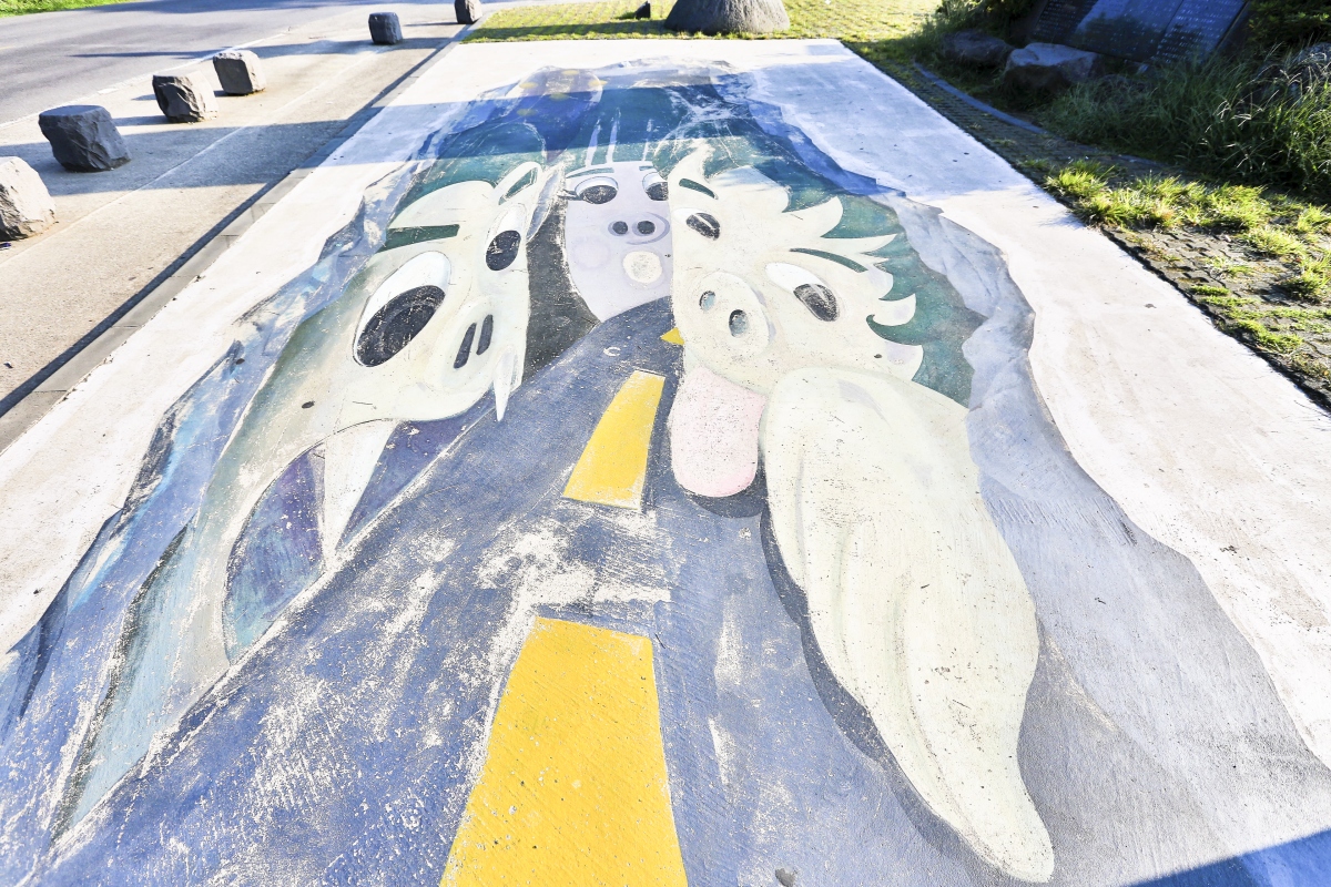 도로 입구 앞에는 무섭게 생긴 조각상이 자리를 지키고 있고 휴게소 가까이로 가면 귀여운 도깨비 가족상을 볼 수 있다.