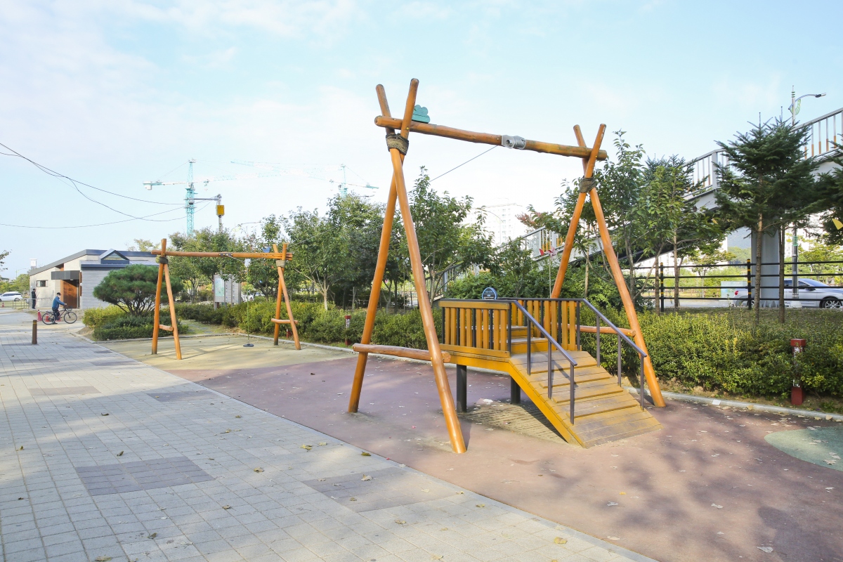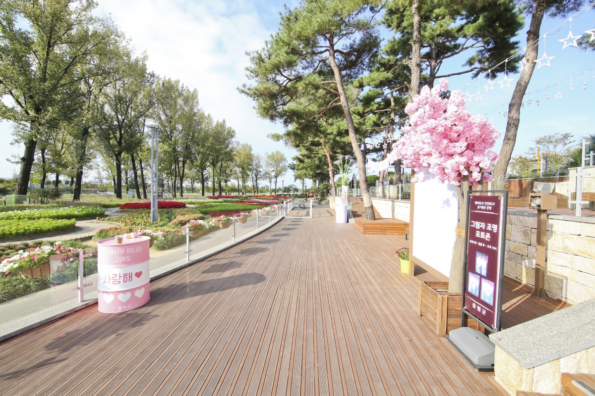 쉼터에는 소형흔들다리, 그네의자, 해먹 등 색다른 휴게시설과 꽃모양 경관조명, 다양한 포토 존 등을 만들어 볼거리와 즐길 거리가 가득하다.