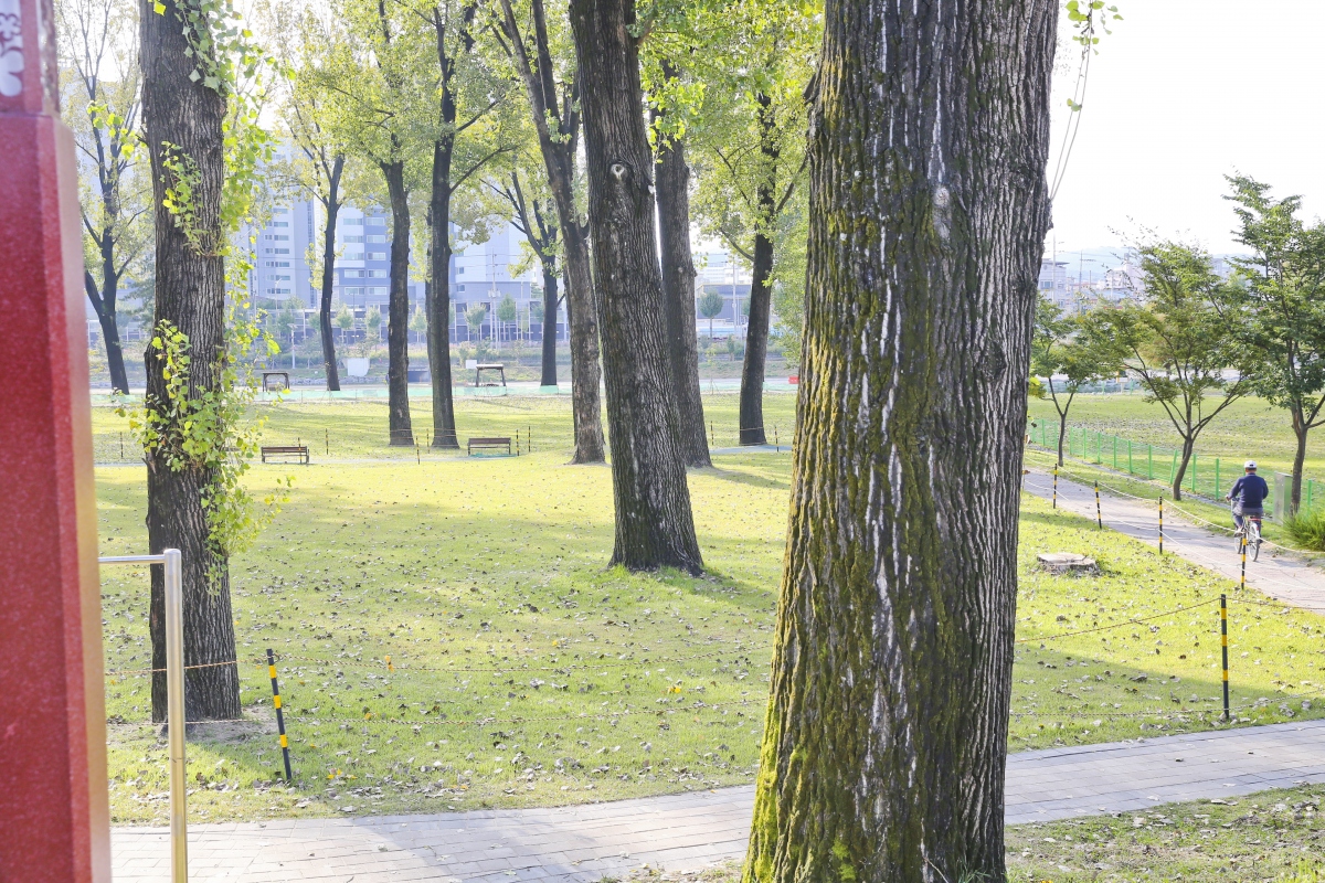 증평 신도시 옆에 있는 보강천에 조성되어 있는 시민휴식공간으로 보강천 옆의 하천변에 장대한 미루나무를 심고