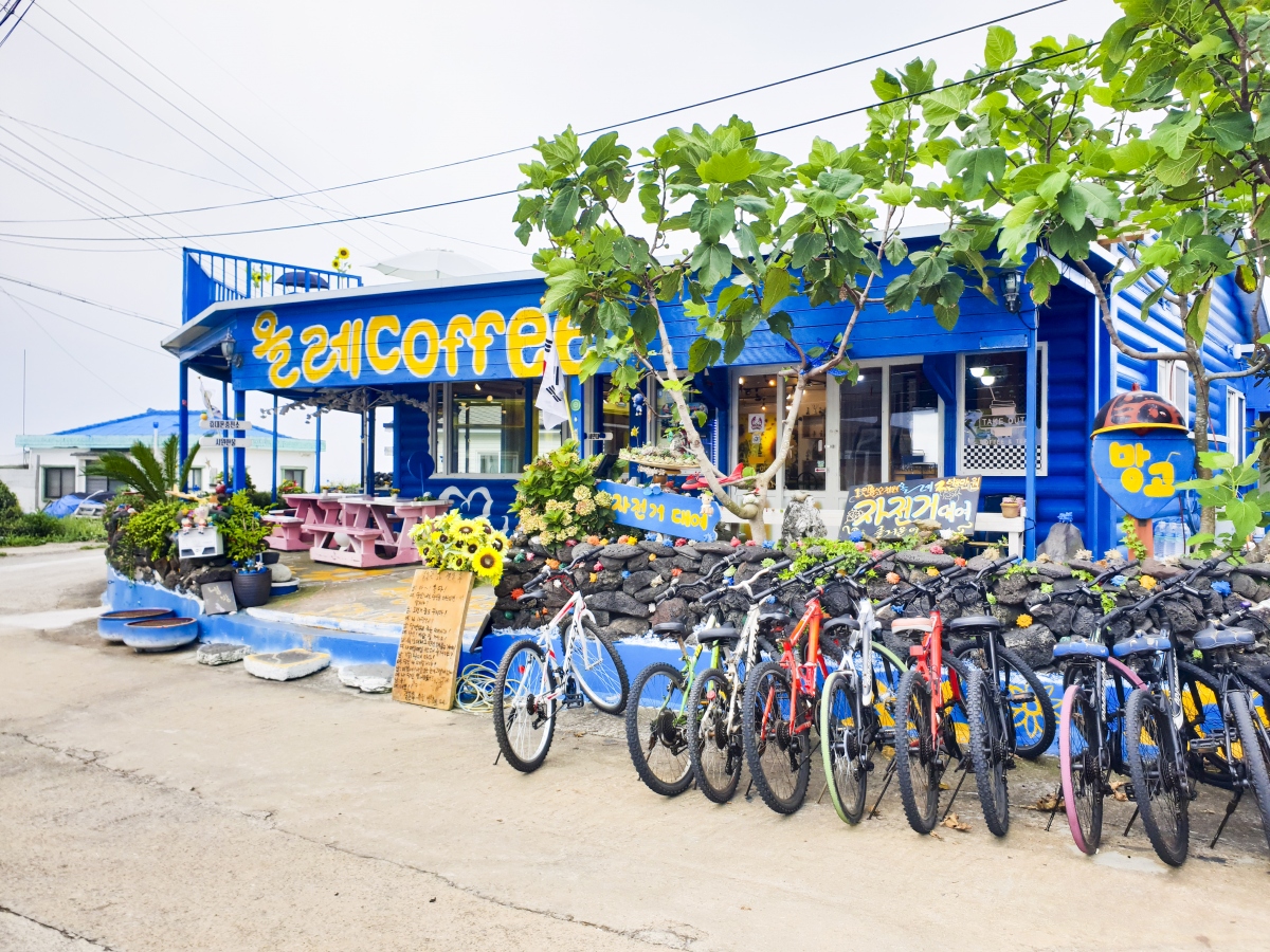 자전거를 타고 비양도의 절경을 감상하고 난 후 여유로운 티타임을 즐길 수 있는 카페와 식당들이 조성되어 있는 비양도는