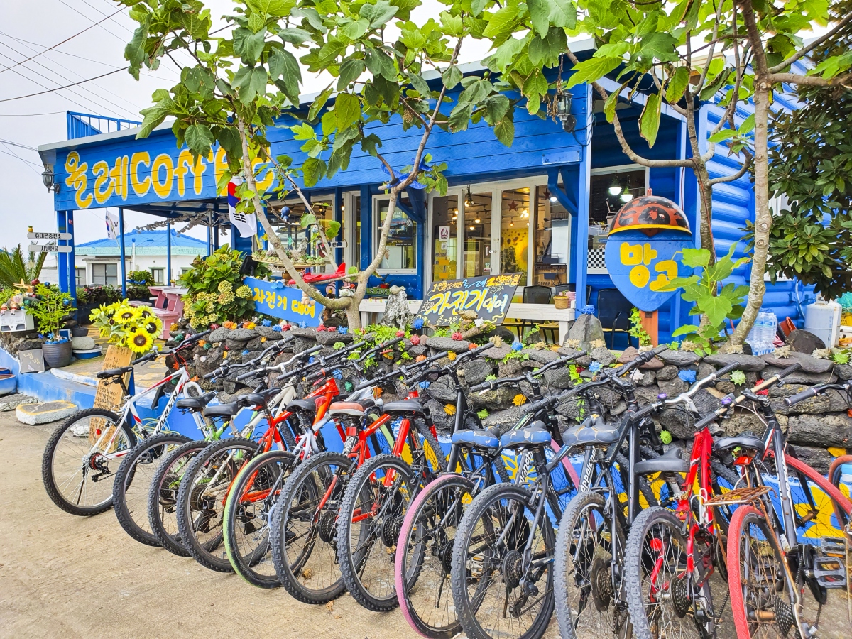 천천히 걷기 좋은 섬 비양도는 선착장 앞에 있는 카페에서 자전거를 대여하면 시원한 바닷바람을 맞으며 자전거를 타고 섬 한 바퀴를 돌아볼 수 있다