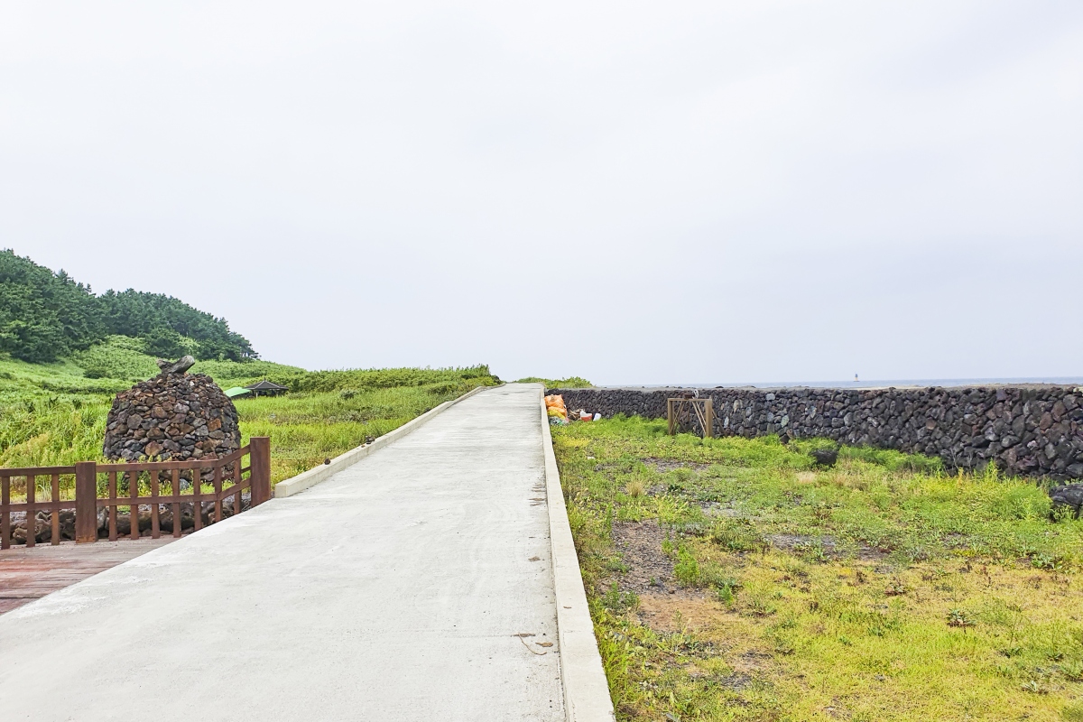 섬 중심부에 오름처럼 솟아 있는 비양봉이 있고길 전체가 굴곡 없이 완만해 느릿느릿 걷기 안성맞춤이다