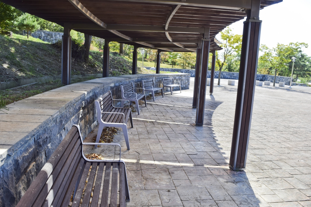 광장 중간에 쉼터가 마련되어 있어서 울창한 숲길을 걸으며 동학혁명의 의미를 되새기며 잠시 휴식을 취하기 아주 좋다.