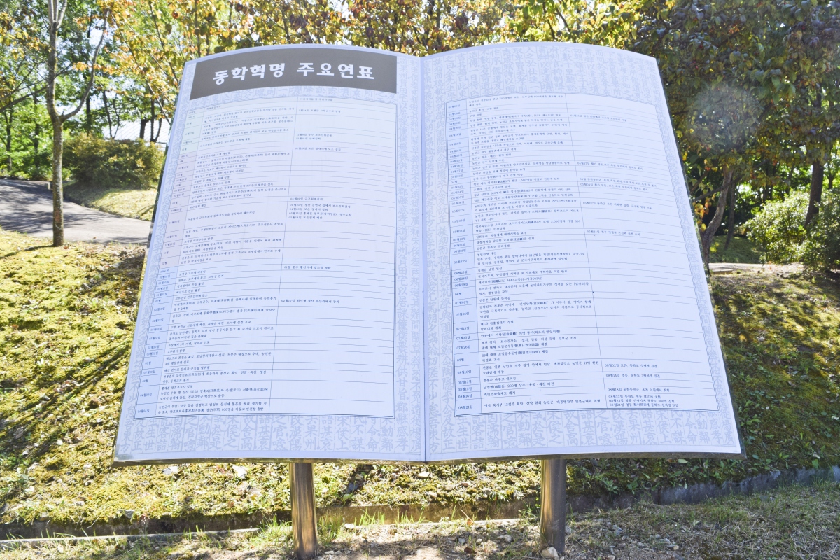 동학혁명 주요연표를 정리해 놓은 이 책 조형물은 천천히 동학혁명의 의미를 되새기며 살펴보기 아주 좋다.
