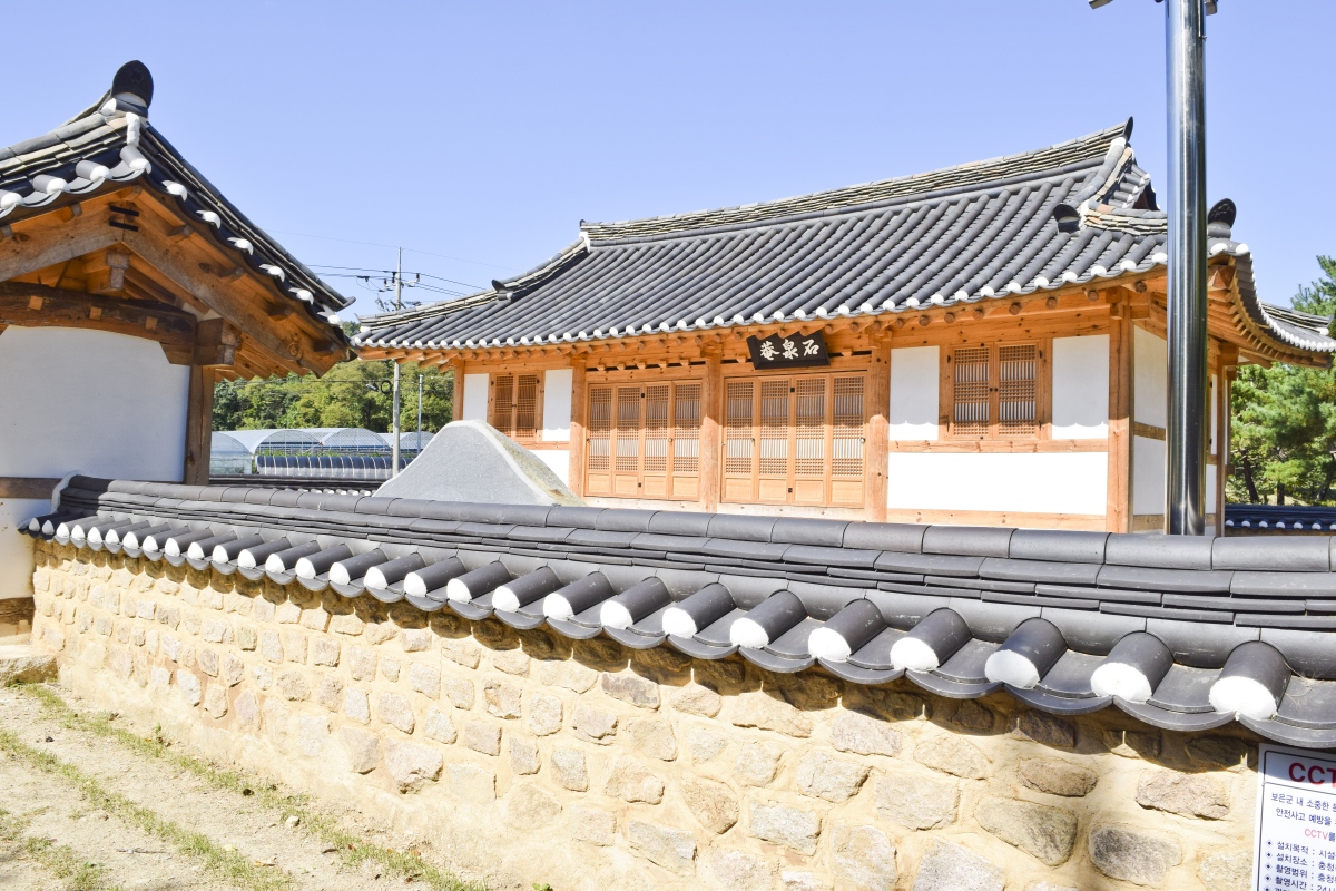 동학농민혁명기념공원 한쪽에 한옥이 조성되어 있다.