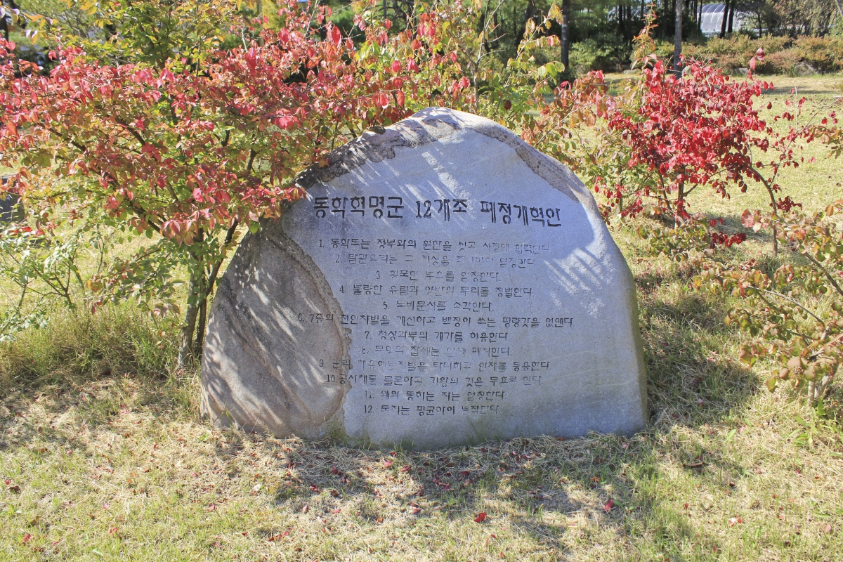 동학혁명이 어떻게 시작되어 발전해 나아갔는지 연표를 살펴본 후 공원 중간에 조성되어 있는 정자에 앉아 휴식을 취하고 있으면 어디선가 농민들의 함성이 들려올 것만 같다.