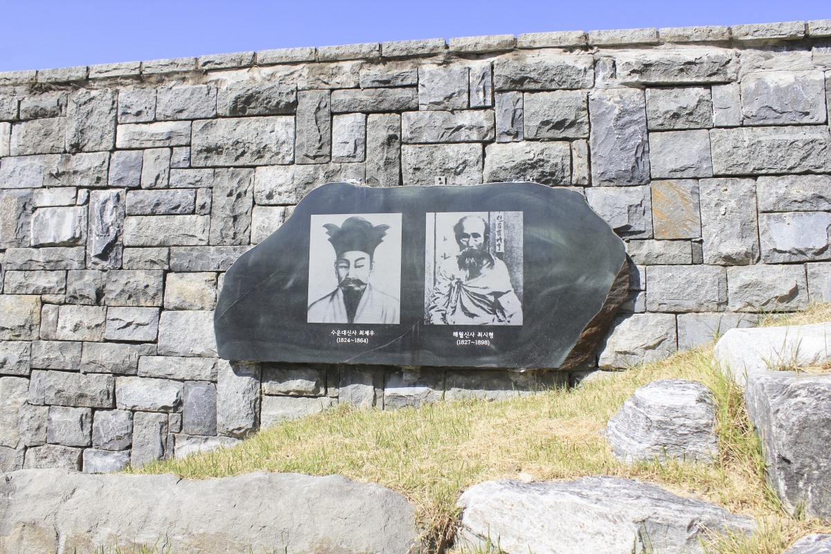 동학의 교주이자 우리 근대사에 큰 영향을 끼친 동학의 창시한 수운대신사 최제우와 그의 제자 해월신사 최시형의 사진이 걸려 있다.