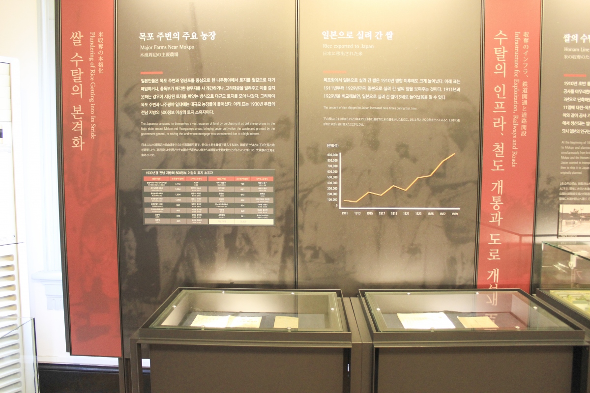 대한민국 사적 제289호이기도 한 목포근대역사관 내부에는 목포의 개항과 당시 조선의 역사 그리고 일제의 야욕과 수탈의 상직적 사진들을 관람할 수 있다.