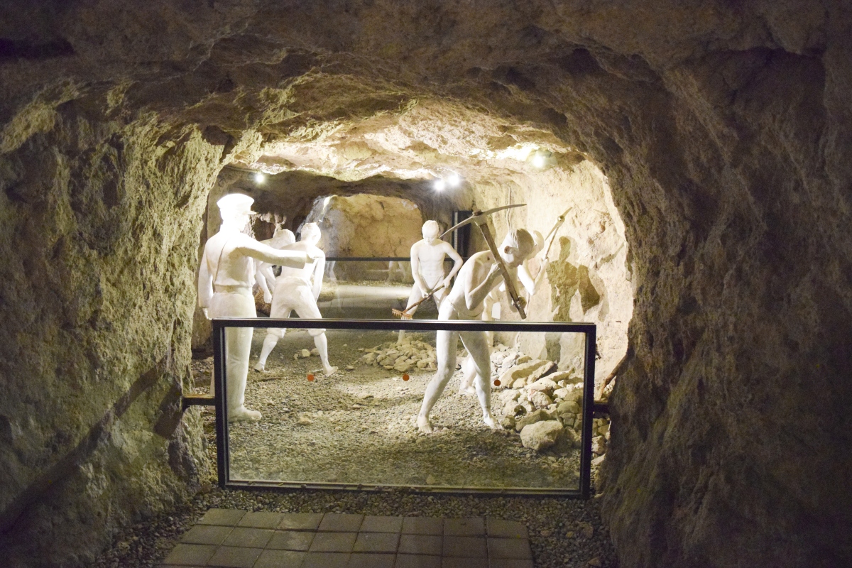 방공호 전시실에서는 방공호 건설 현장을 하얀색 사람모형을 세워 두어 어둠 속에서 당시의 암울함을 볼 수 있다.