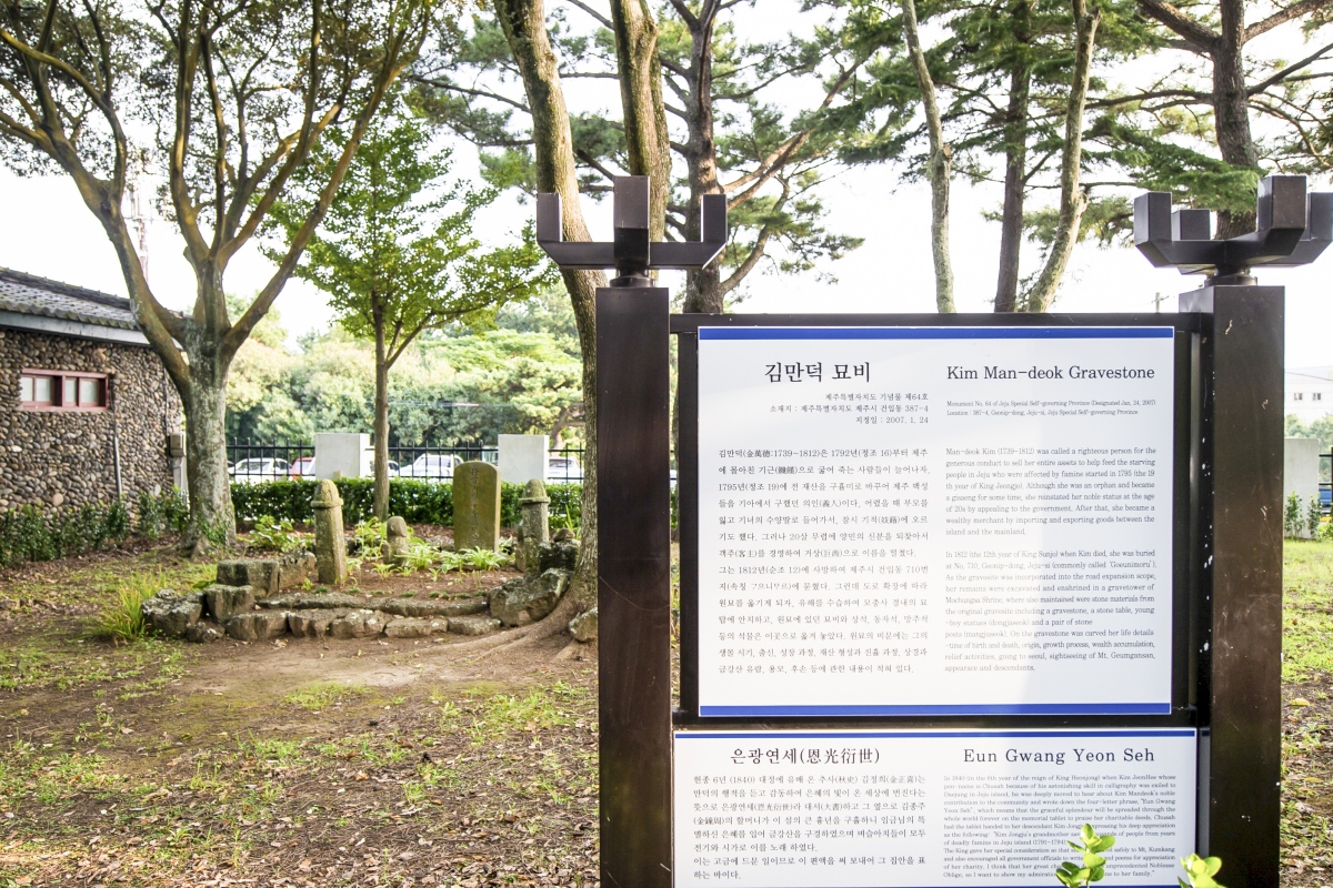 흉년이 들어 제주도 도민들이 굶어 죽는 처지가 되자 자기 재산으로 쌀을 사서 나눠주며 구제하였다는 의녀 김만덕할망기념탑을 비롯해