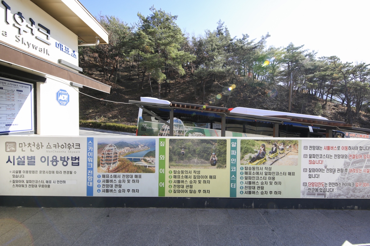 매표소에서 이용하고자 하는 코스 이용권과 입장권을 구입하고 셔틀버스로 5분 정도 이동하면 된다.