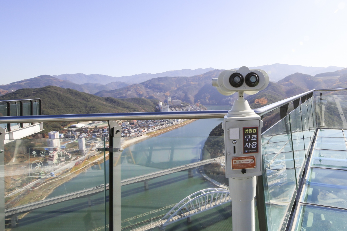 전망대에 마련된 무료로 사용할 수 있는 망원경은 단양의 아름다움을 더 가까이 볼 수 있도록 도와준다.