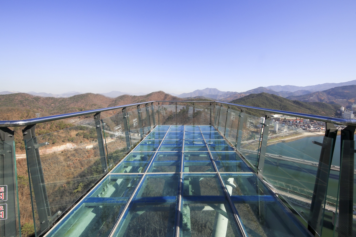 쓰리 핑거(세 손가락)형태의 하늘길은 길이 15미터 폭 2미터의 고강도 삼중 투명 강화유리로 만들어져 발 밑으로 흐르는 남한강을 볼 수 있다.