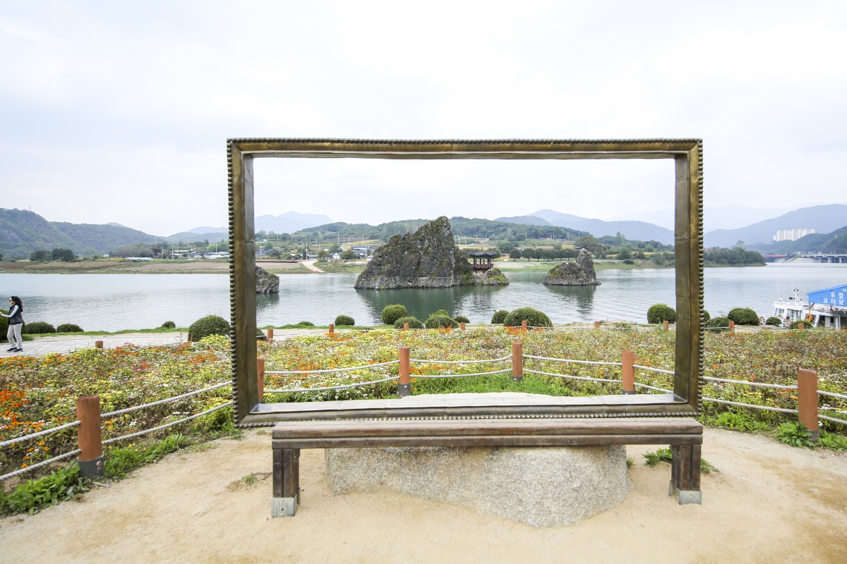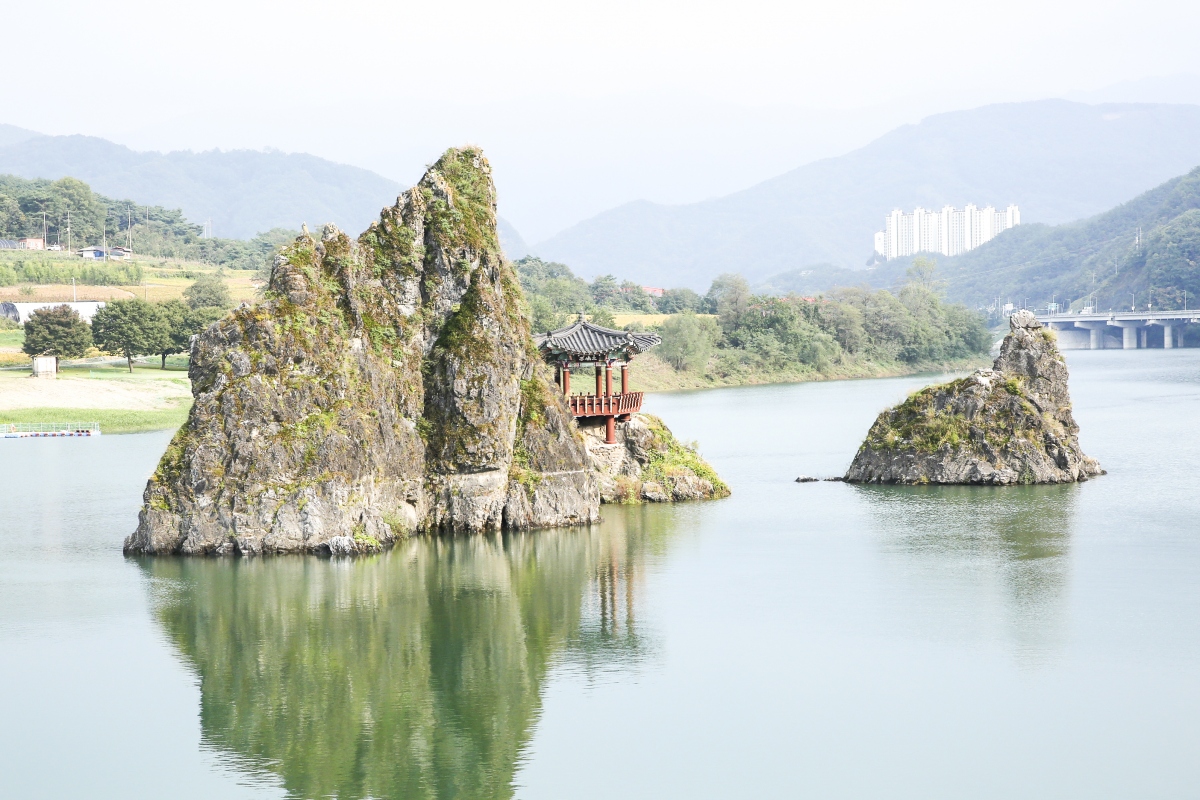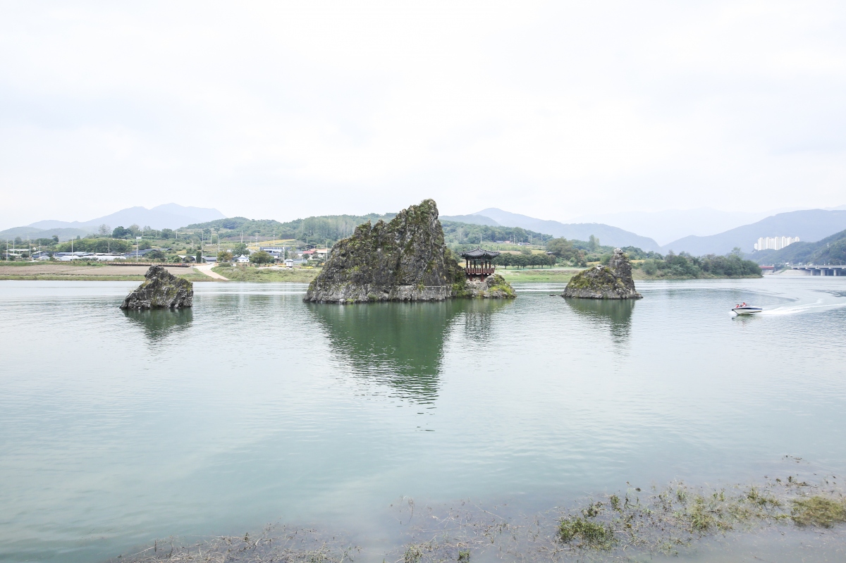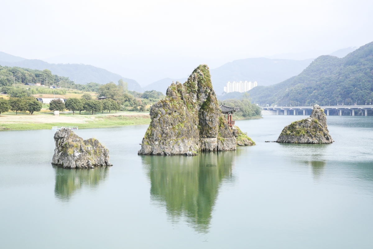 남한강 상류 한가운데에 우뚝 솟아있는 3개의 섬으로 세 개의 바위가