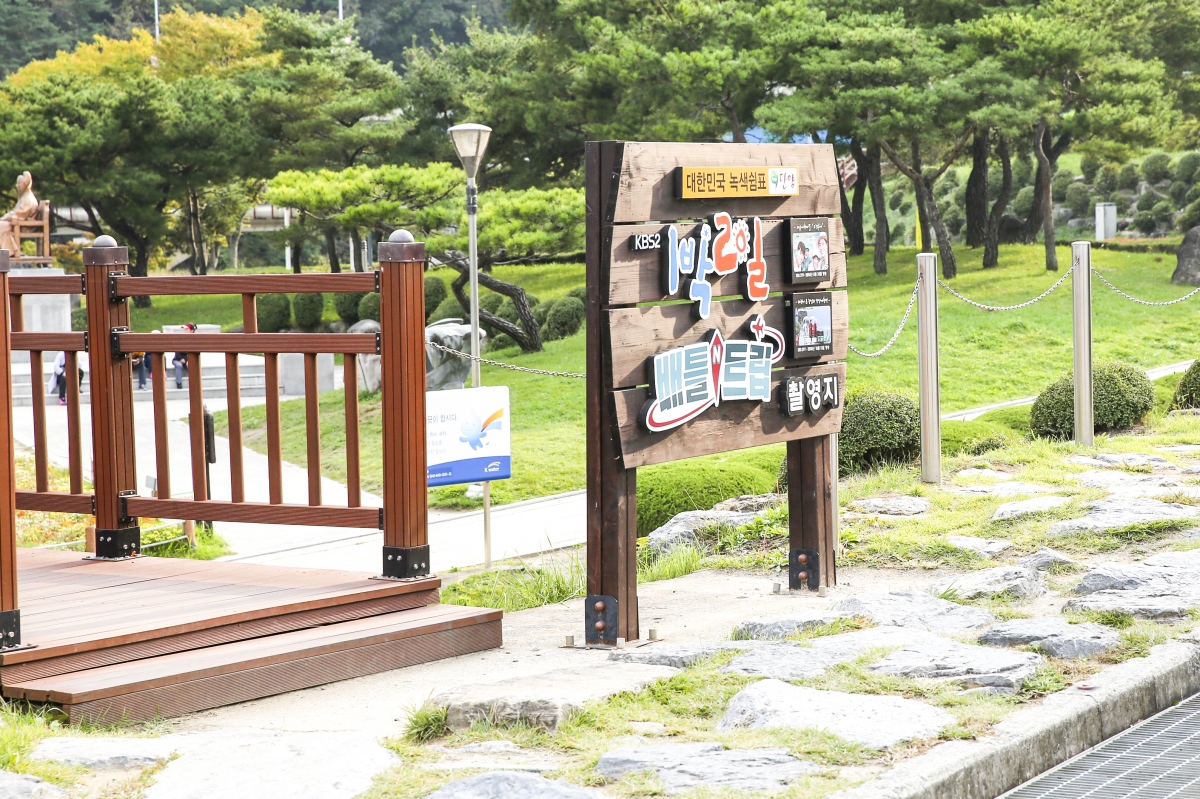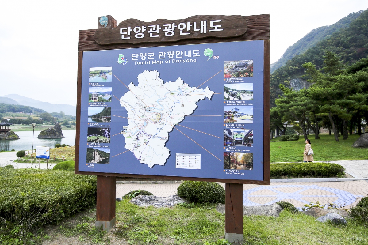 또 공원의 곳곳에는 TV예능프로그램이 다녀간 흔적과 도담삼봉을 배경으로