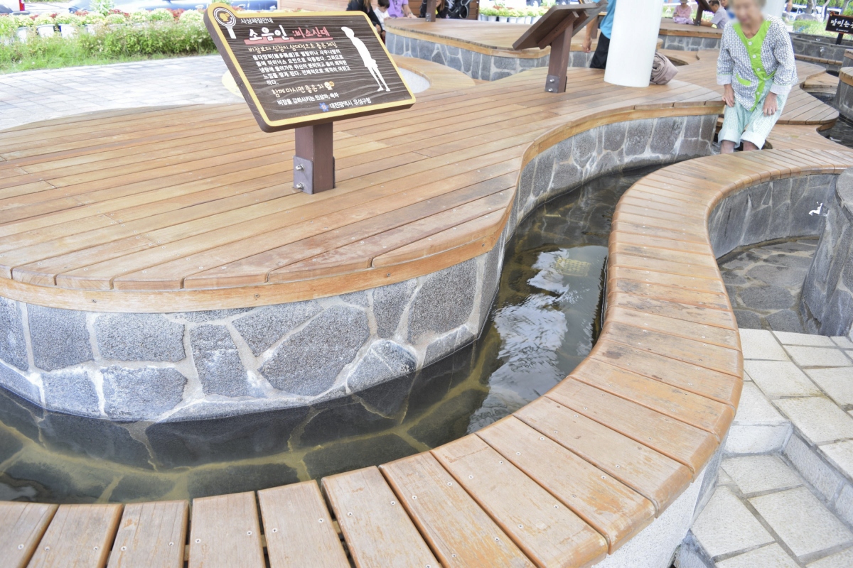 족욕체험장은 유성온천공원의 테마거리에서 가장 먼저 떠오르는 상징적인 곳으로 족욕탕의 수온이 42.8도로 몸의 피로를 풀기에 아주 좋다.