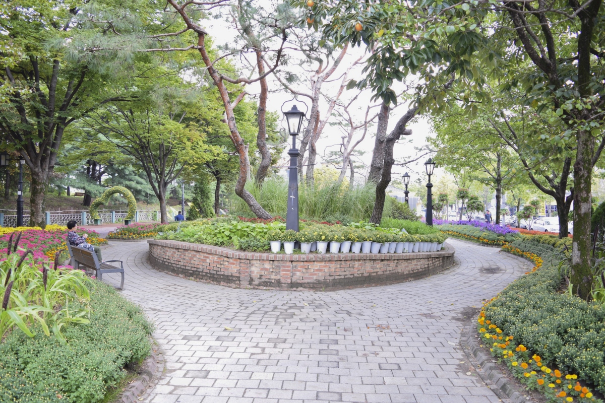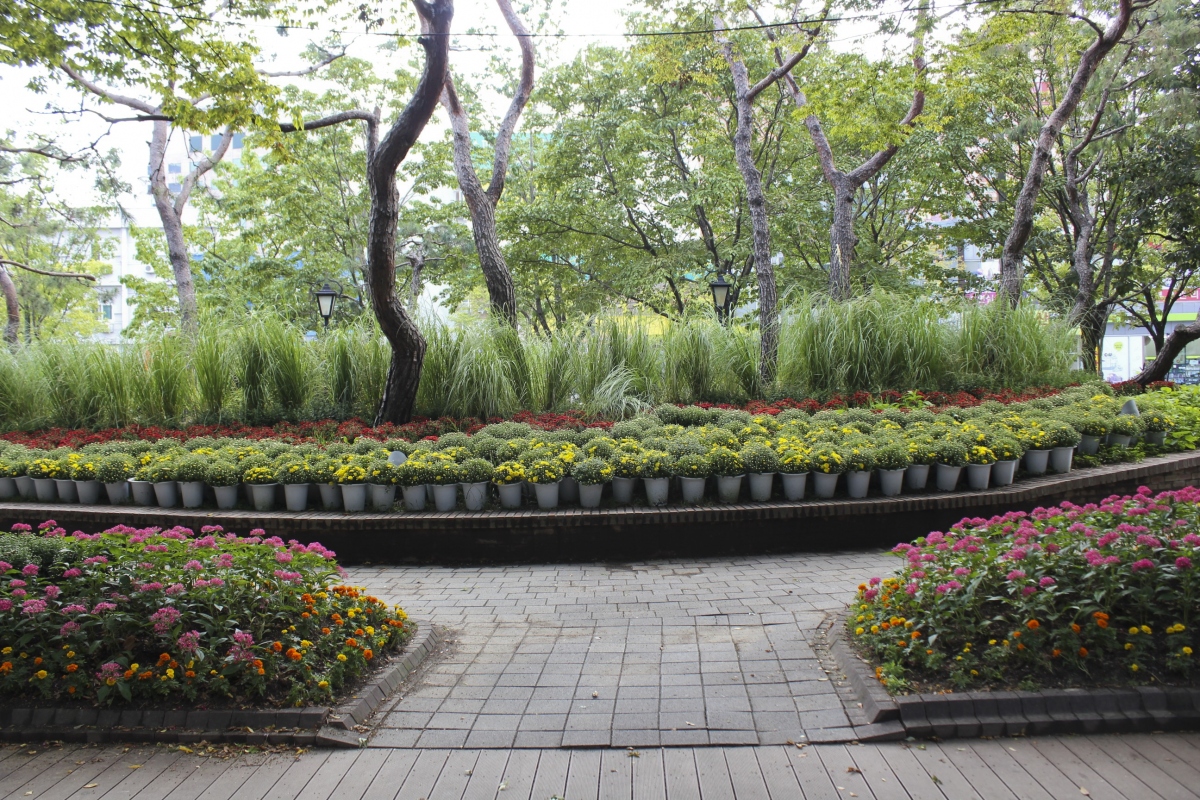 공원 내 여유로움이 느껴지는 젊음의 광장에는 화단도 예쁘게 잘 가꿔져 있어 산책하기에도 아주 그만이다.