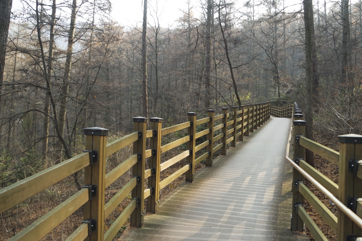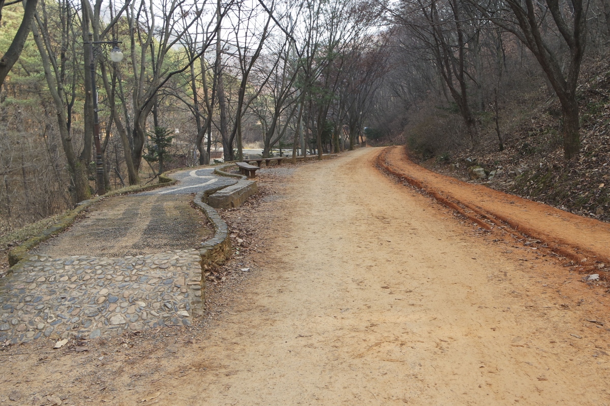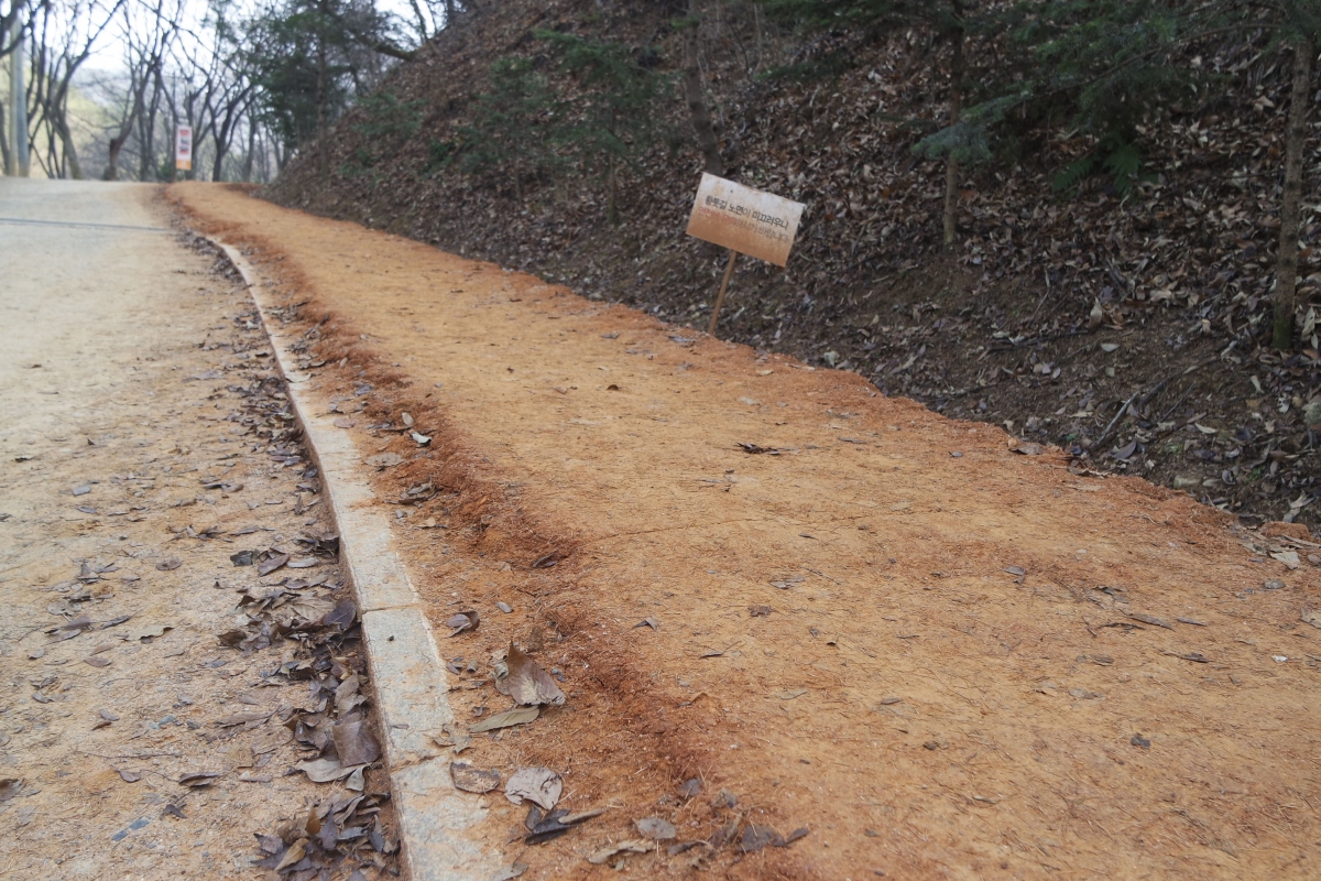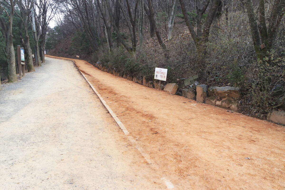 황톳길은 전체적으로 오르막과 내리막을 반복하는 완만한 숲길로 이루어져 있어 특별한 장비 없이 가벼운 복장에 운동화만 신어도 충분히 산행이 가능하다.