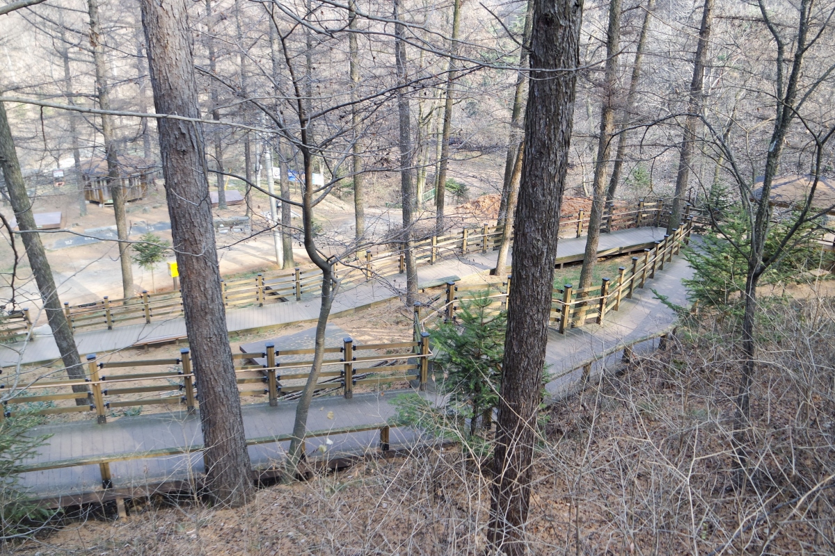 숲 골짜기 아래에는 예쁜 포토 존과 체육시설, 등산순환로, 모험놀이 등 다양한 시설들을 갖추고 있어 이곳을 찾는 사람들의 휴식공간으로 이용되고 있다.