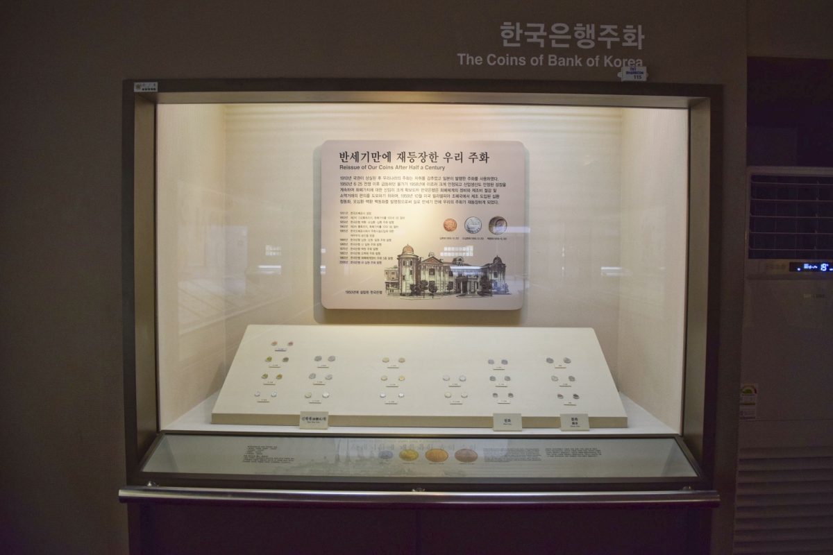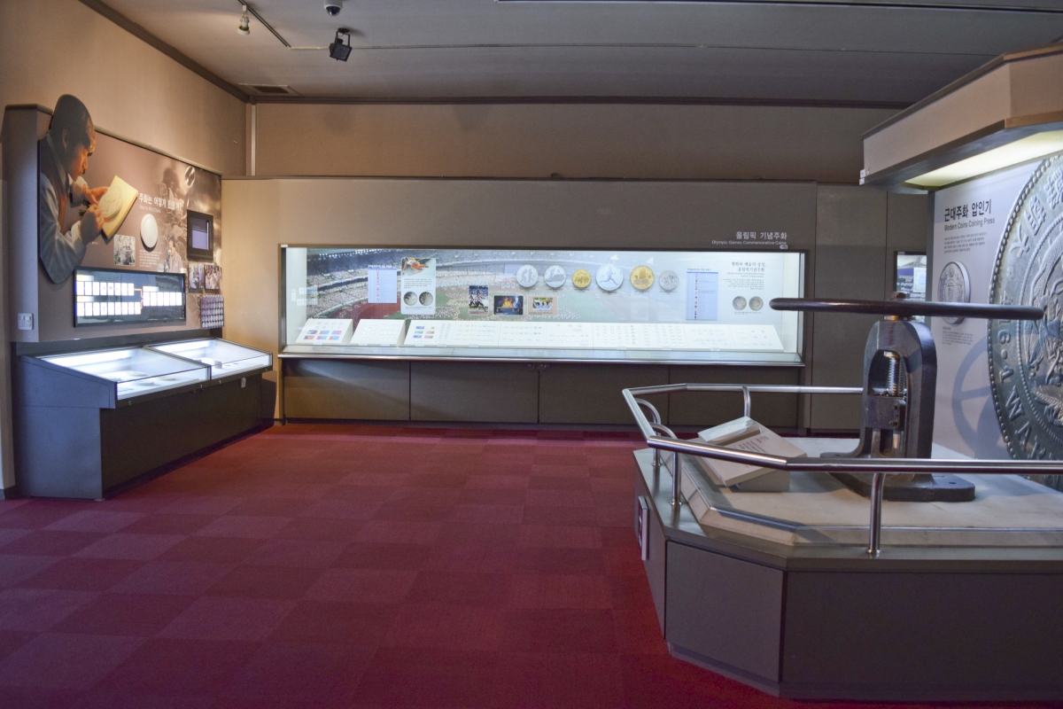 우리나라 화폐를 생산하는 한국은행 주화의 역사와 실물을 볼 수 있는 전시관이 연결되어 있다.