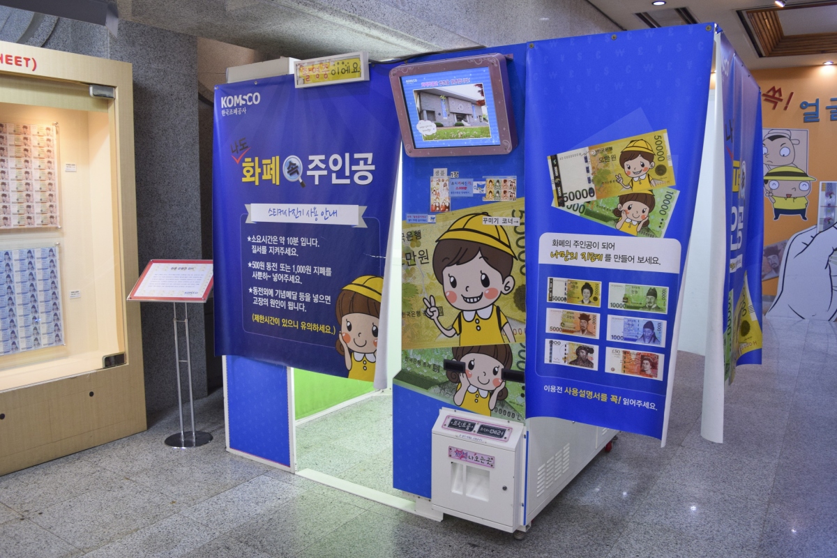그 옆에는 화폐를 배경으로 사진을 찍을 수 있는 포토존도 설치되어 있다.