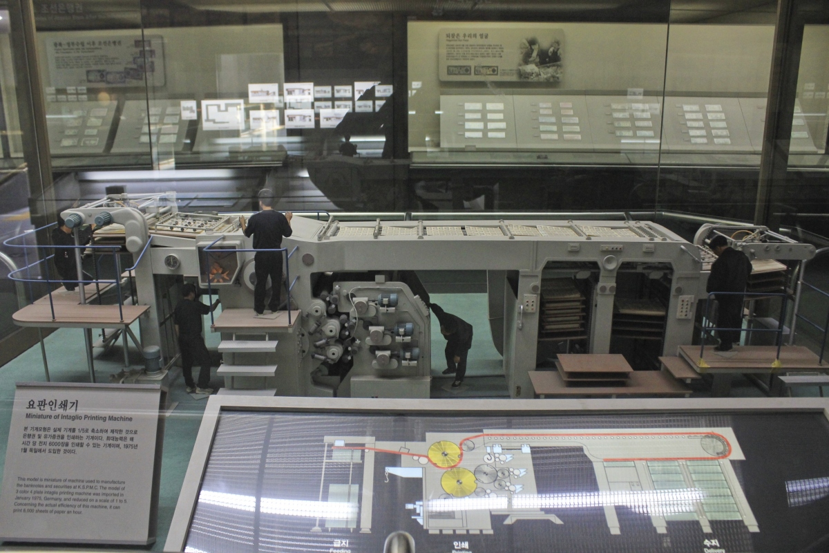지폐를 만들 때 사용하는 인쇄판, 잉크 등의 설명과 함께 지폐를 인쇄하는 과정과 제조 과정도 모형으로 볼 수 있다.