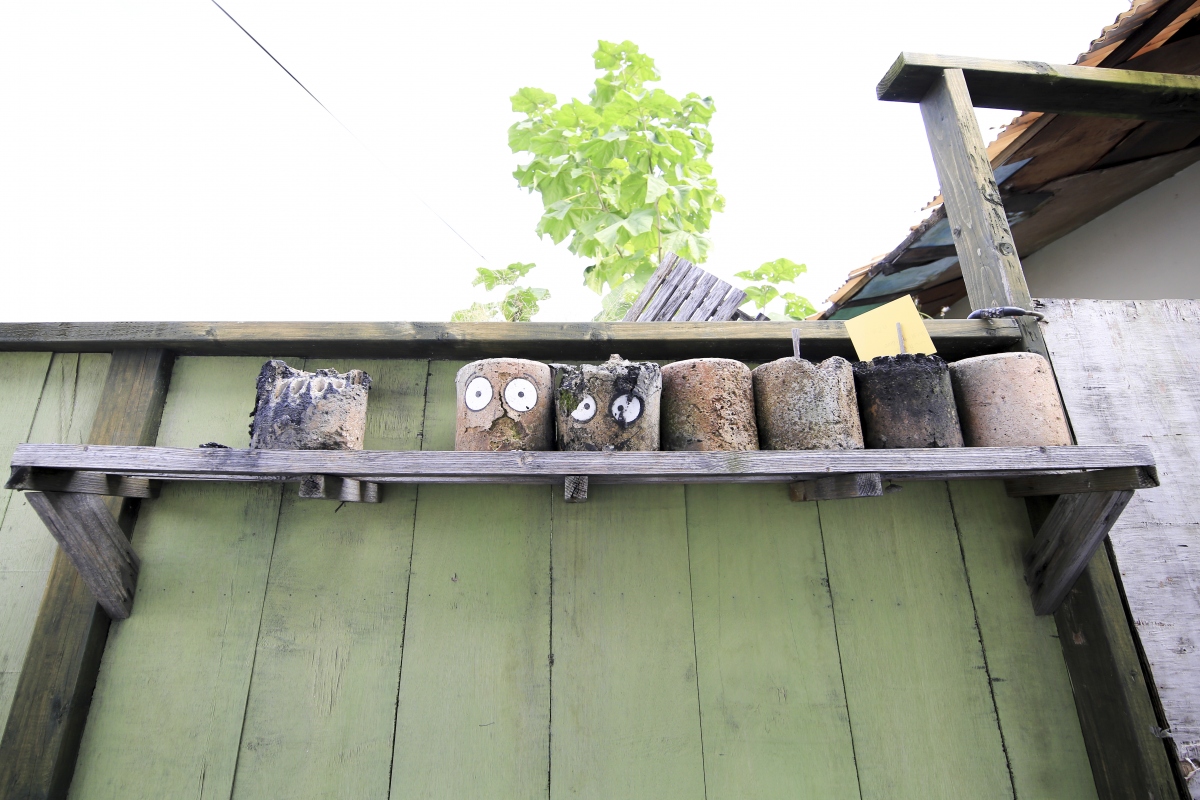 담벼락을 채운 그림들과 함께 화분도 알록달록하게 색칠이 되어 있고, 익살스러운 모습을 한 연탄재도 보인다.