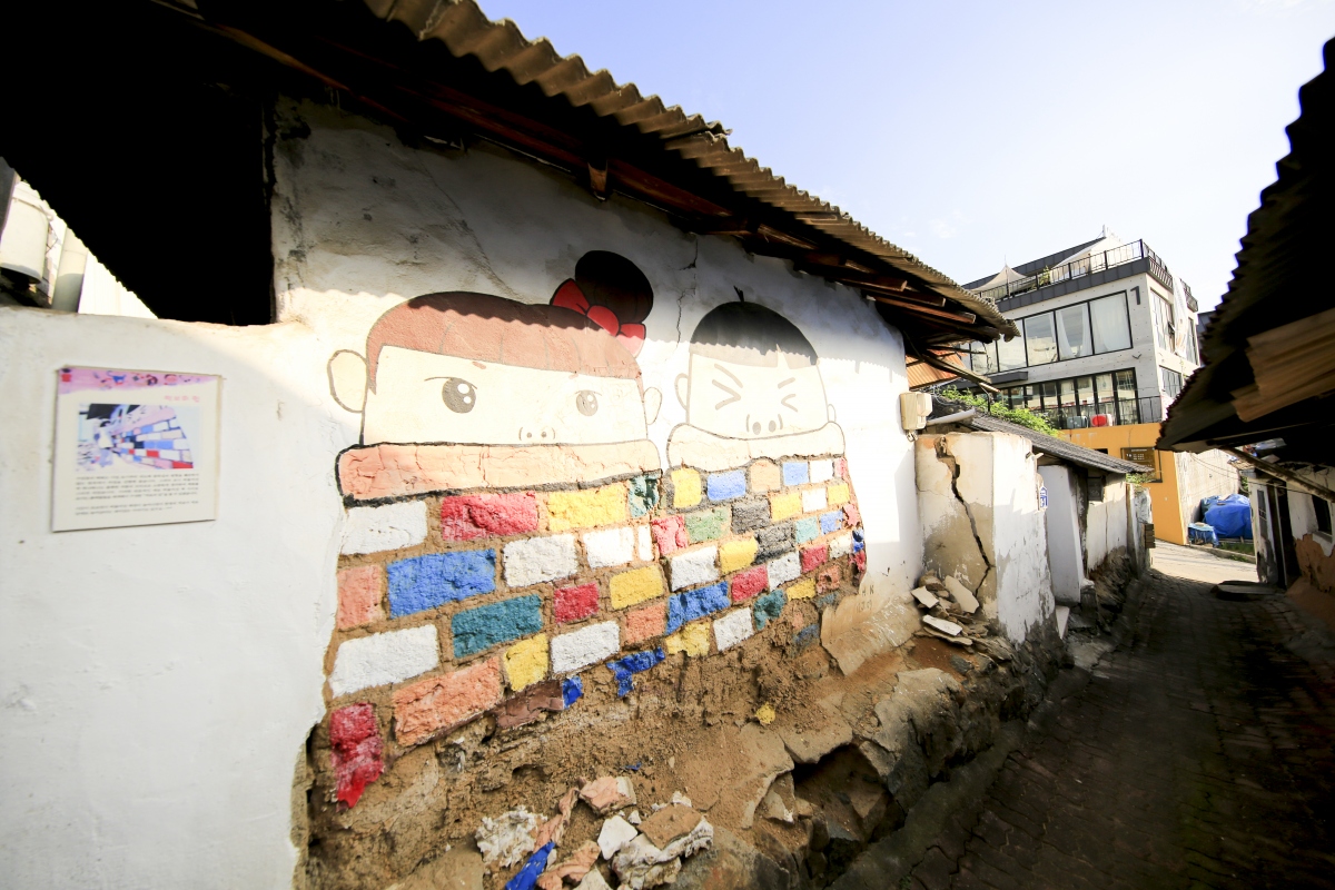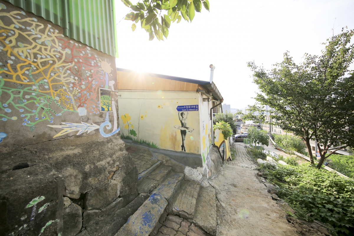 수암골은 꾸민 듯 꾸미지 않은, 있는 그대로의 동네 풍경에 그림이 들어가 새로운 풍경을 만들어 내고 있다.