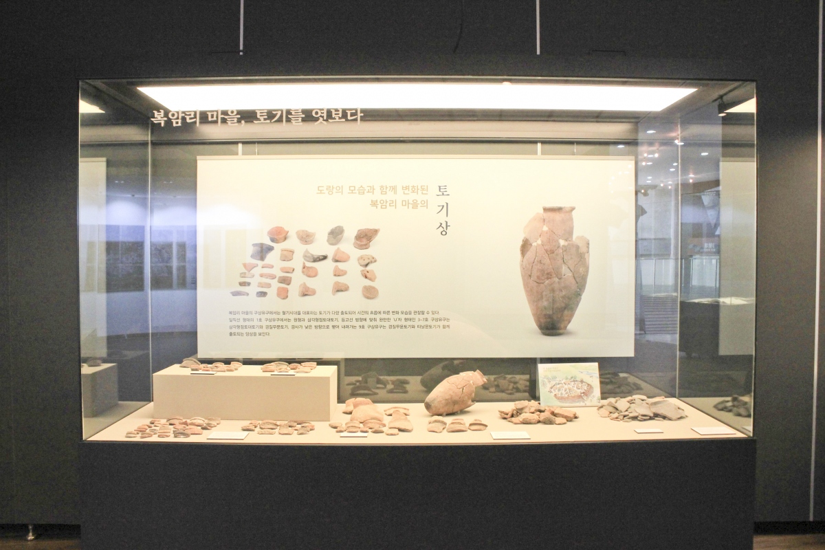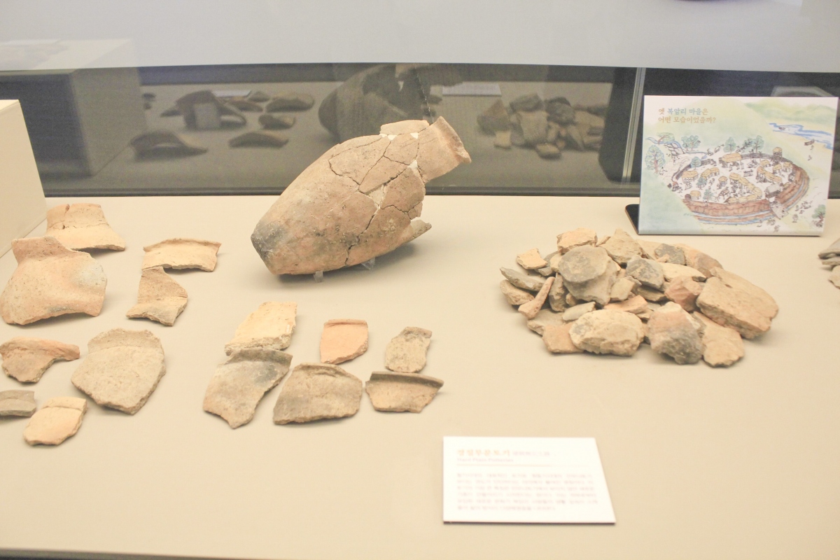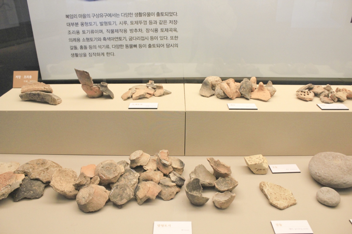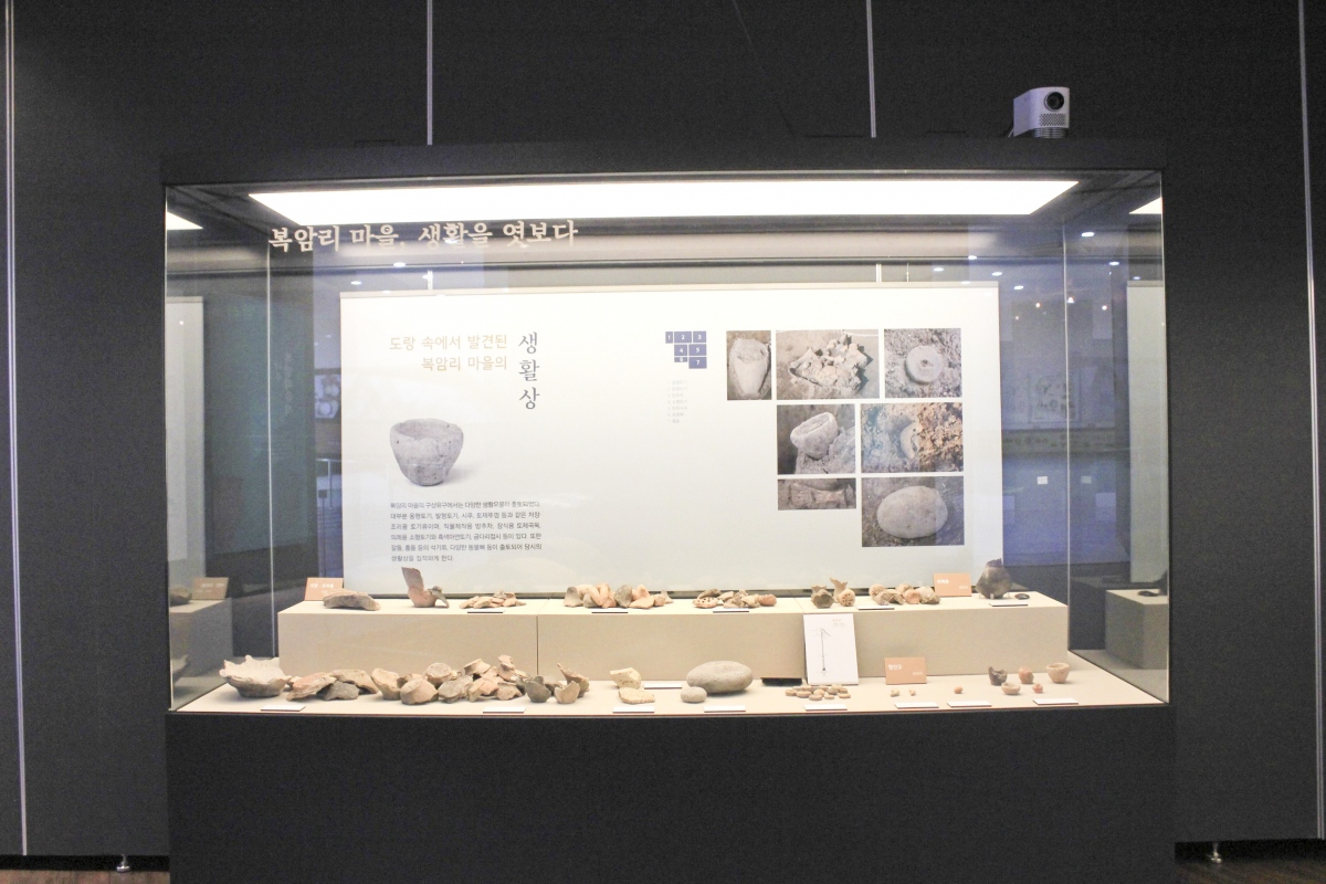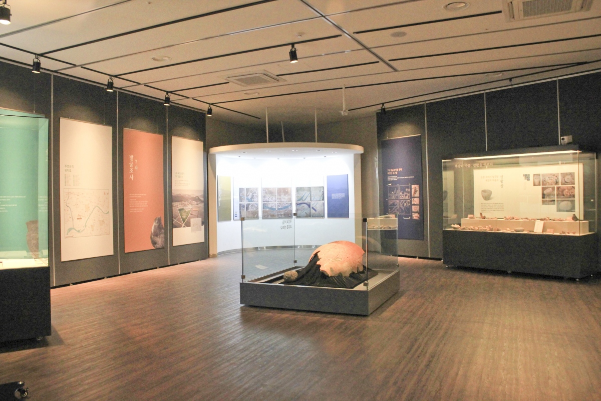 고대토기와 인골 등 고대 생활과 생산유물들을 눈으로 확인할 수 있도록 전시되어 있다.