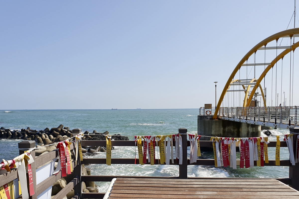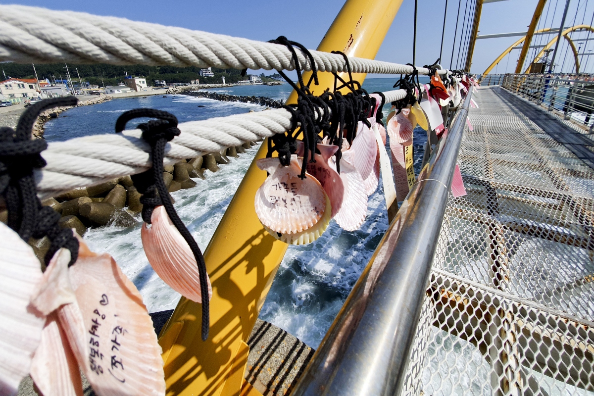 다리 위 난간에는 이곳을 찾은 사람들의 소원과 염원이 담긴 조개껍질이 매달려 있는 모습을 볼 수 있다.