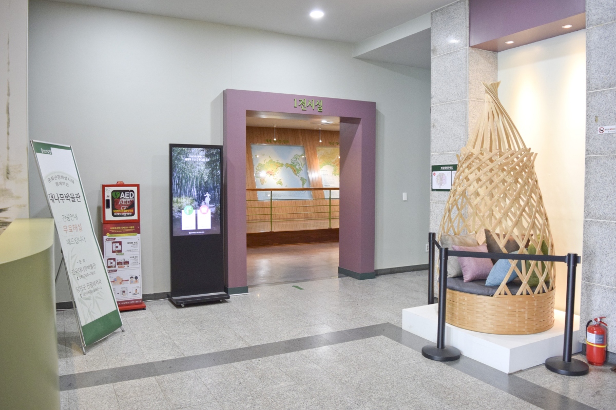 제1전시실에서는 대나무의 성장과정과 각종 자료 및 죽순을 이용한 식품, 정의 특성, 세계 분포도, 한국 분포도를 볼 수 있다.