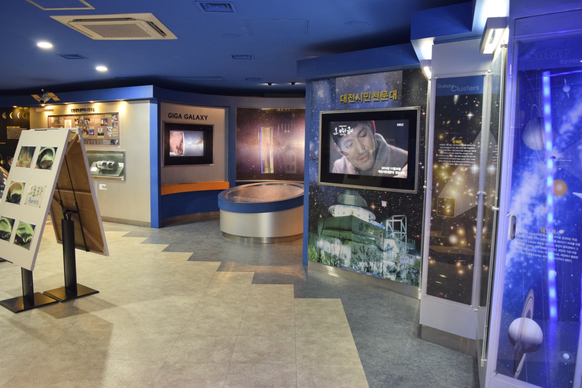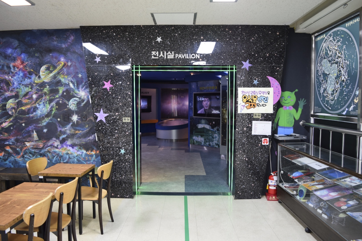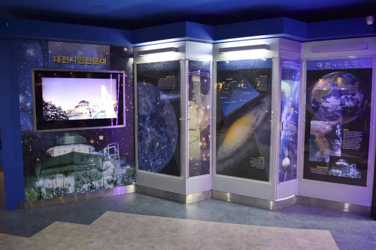 2층에는 전시실과 휴게실이 갖추어져 있는데, 2층에 위치하고 있는 전시실은 이곳 대전시민천문대를 찾은 사람들이