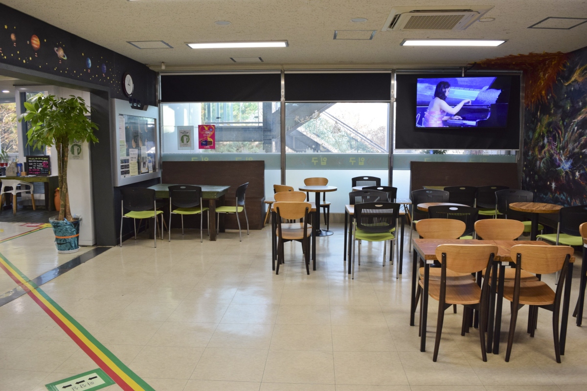 단 음료나 음식물은 이곳 휴게실에서만 먹을 수 있고 다른 공간들에서는 음식물 반입이 금지되어 있다.
