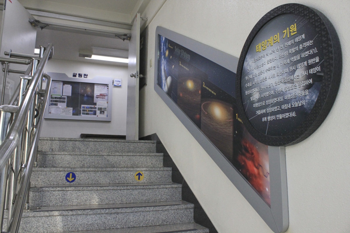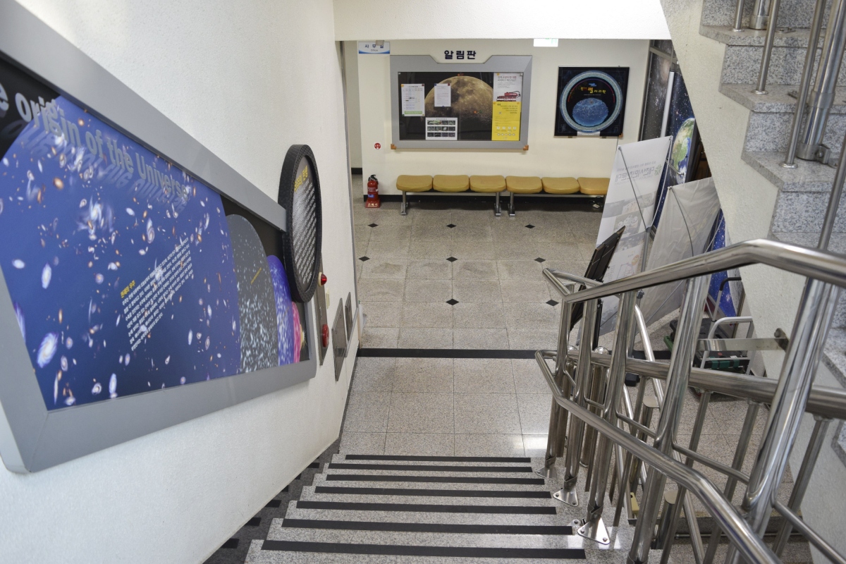 이동하는 복도와 계단에도 우주에 대한 자료를 전시해 놓아 천체에 대해 공부할 수 있다.