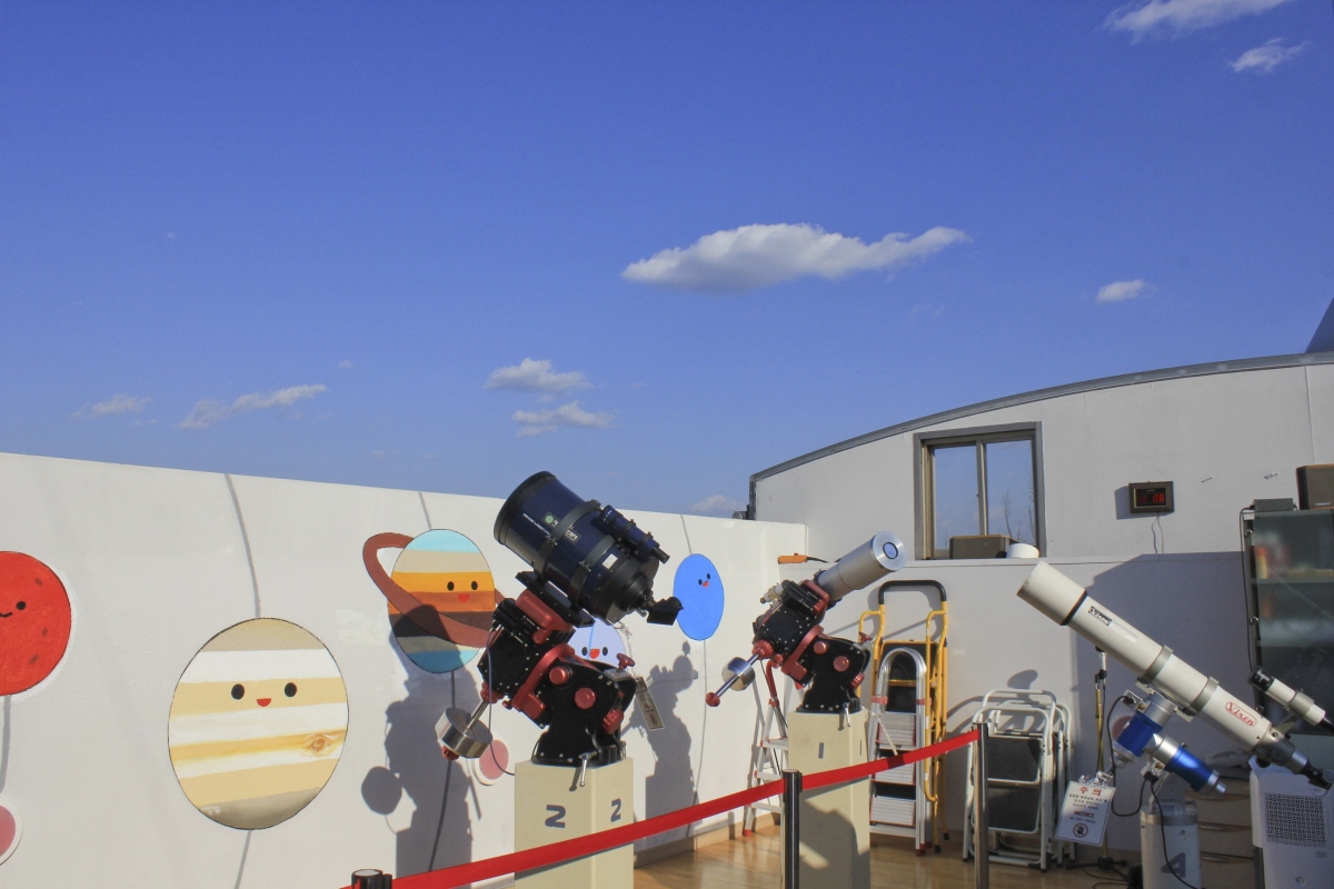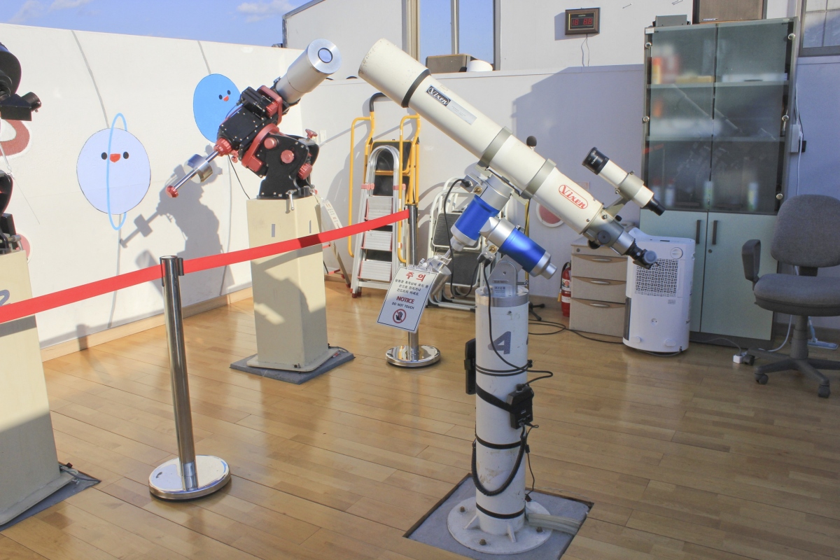 돔 형태의 주관측실에서 별자리와 태양 감상이 끝났다면, 이번에는 활짝 열려 있는 보조관측실에 갈 차례이다.