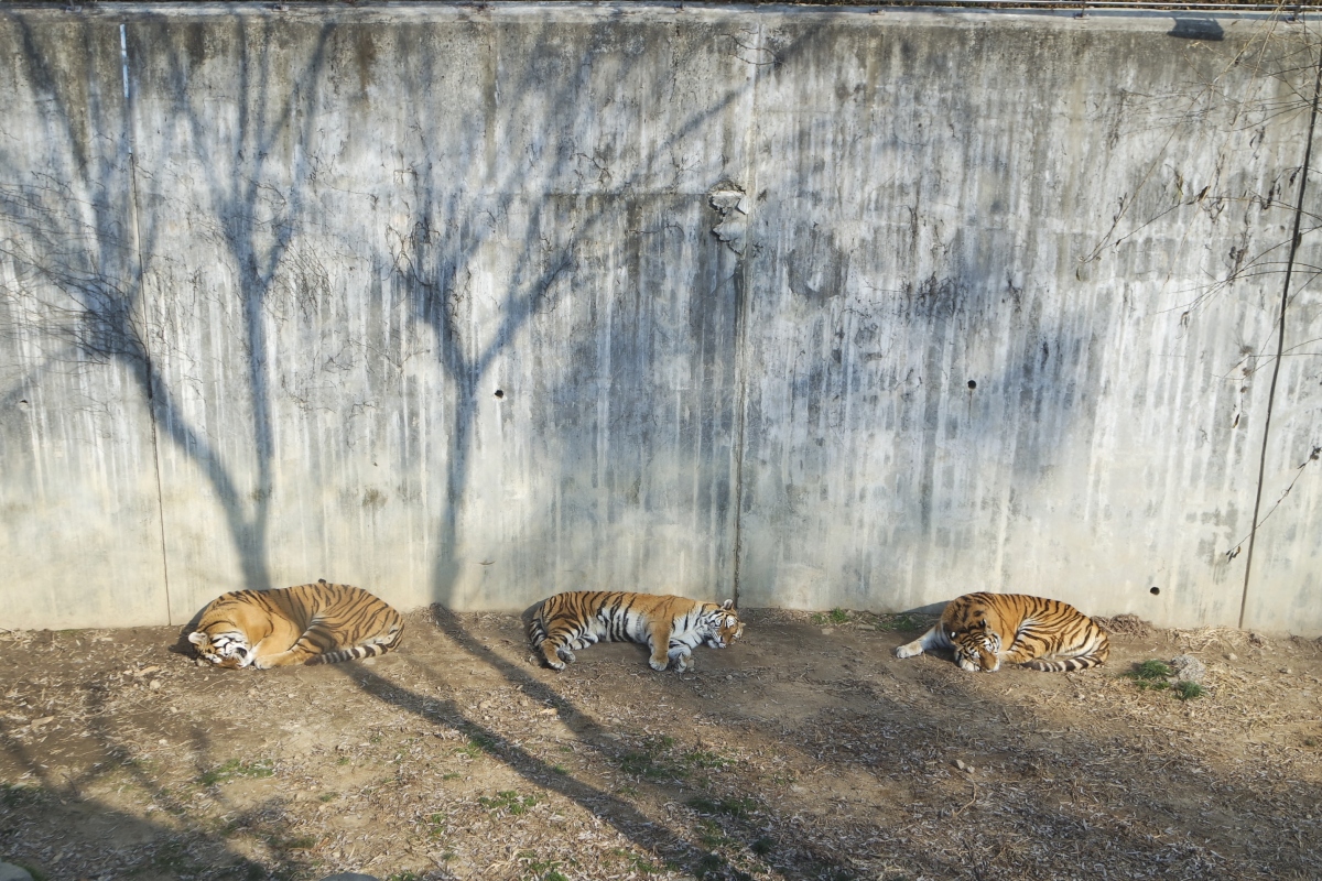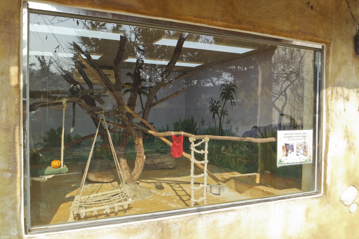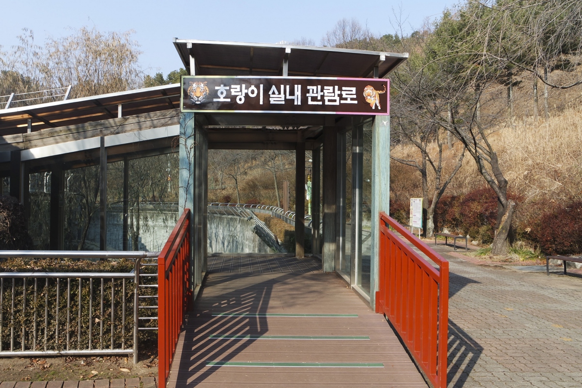 호랑이 실내 관람로에서는 통 유리 너머로 어슬렁어슬렁 계속 걸어 다니는 호랑이를 볼 수 있다.