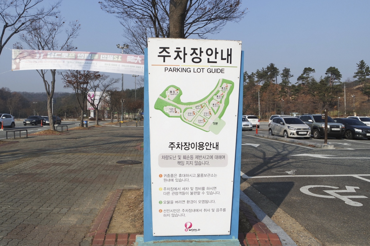 도심 속 자연이 살아있는 또 하나의 세상 오월드는 주차장이 매우 넓어 주말에도 불편함 없이 주차가 가능하다.