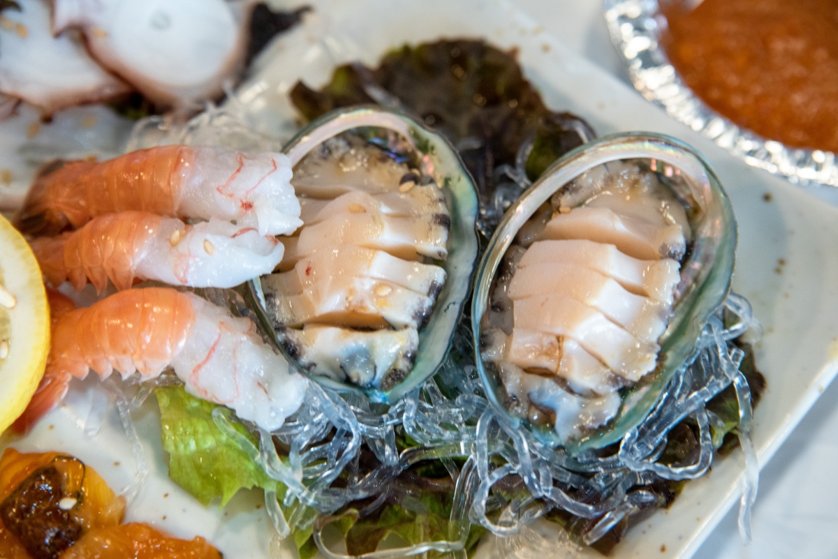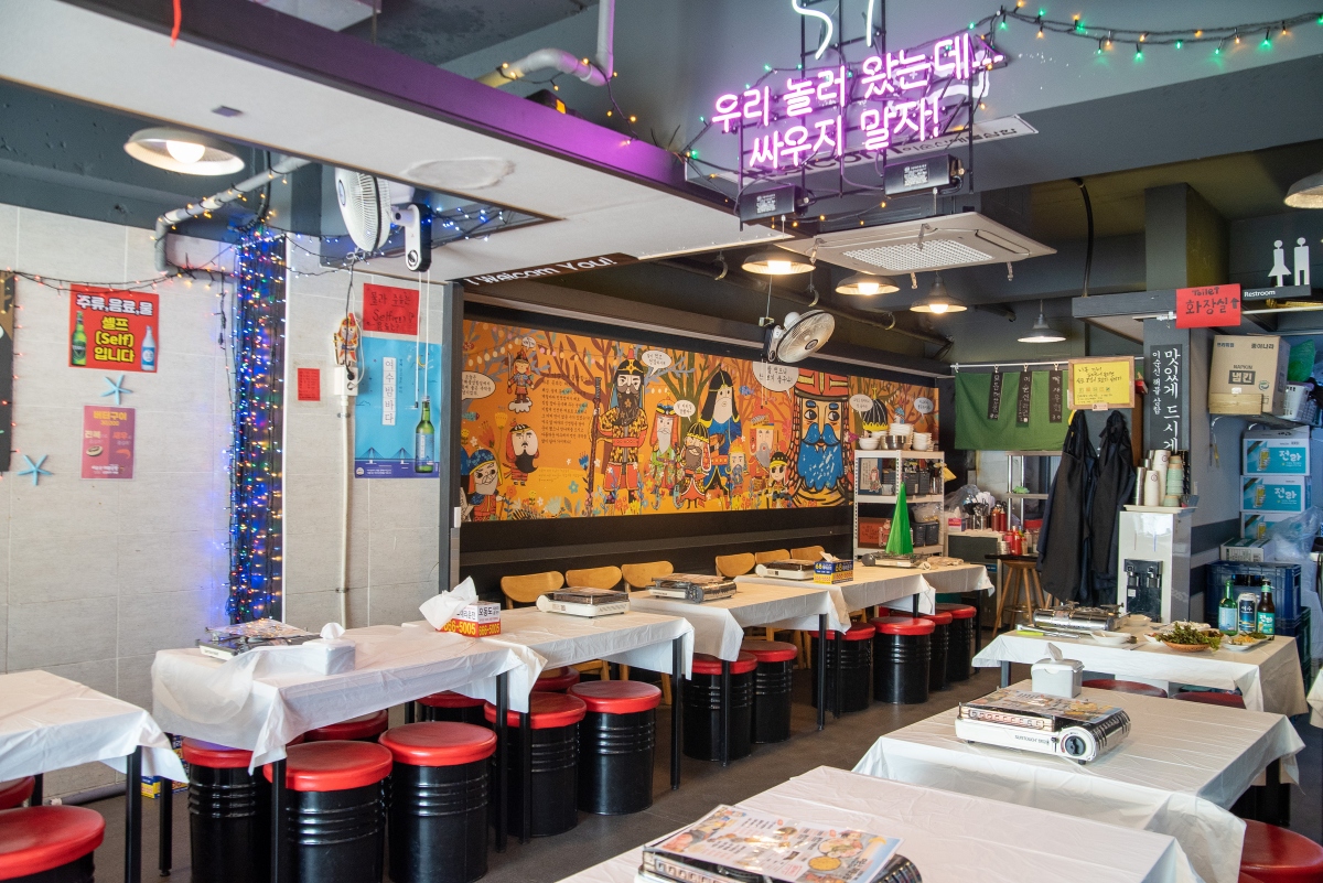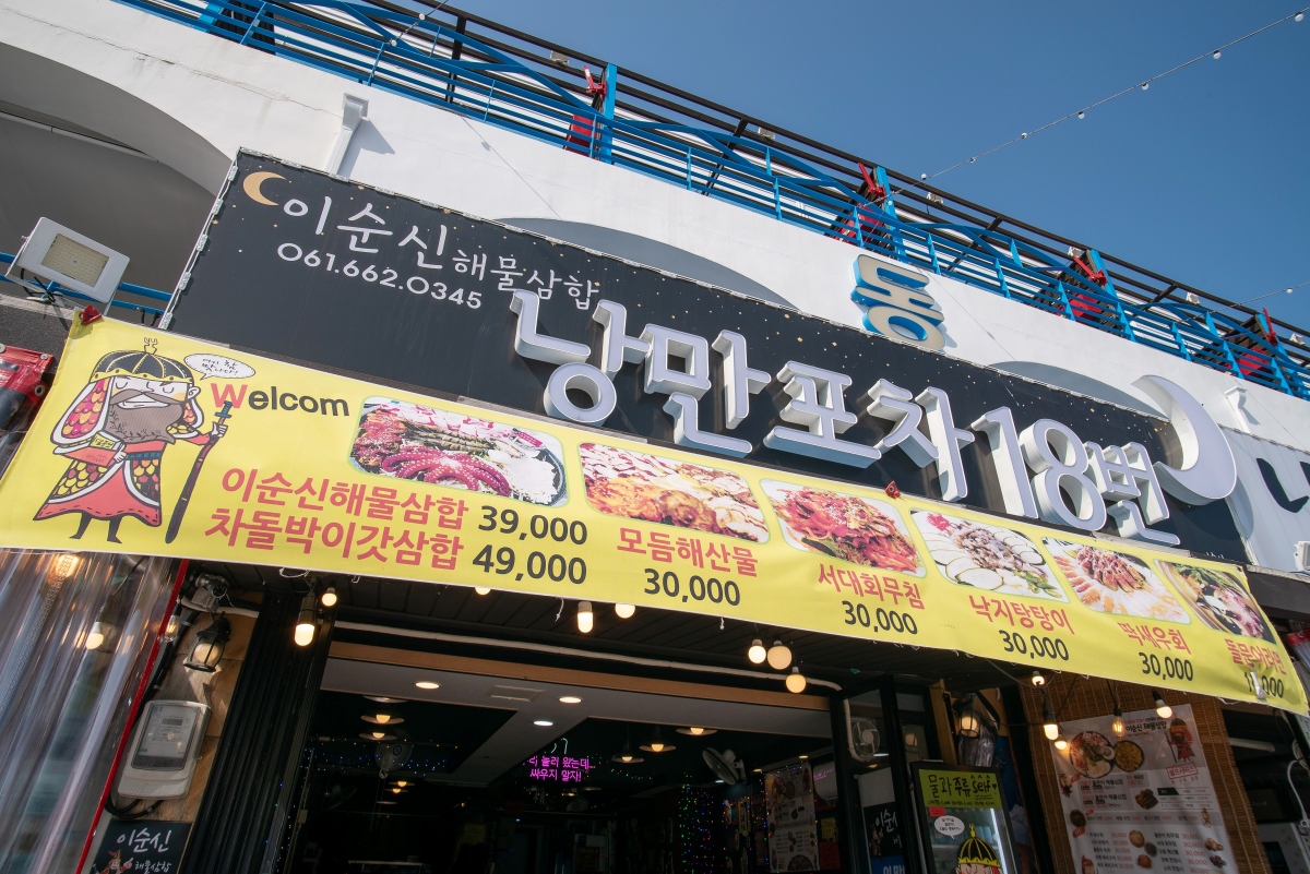 해물삼합을 즐길 수 있는 이 집은 ‘안녕 여수! 놀러 와서 싸우지 말자’ 시그니쳐 깃발이 눈길을 끕니다.