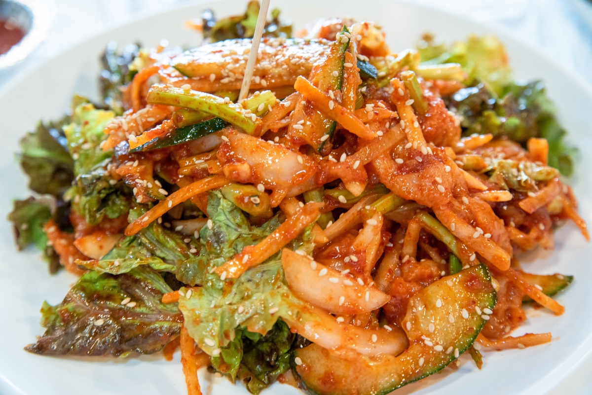 여수 앞바다에서 직접 잡은 돌문어와 주인장이 직접 담근 갓김치가 삼합에 들어가 더욱 깊은 맛을 냅니다.