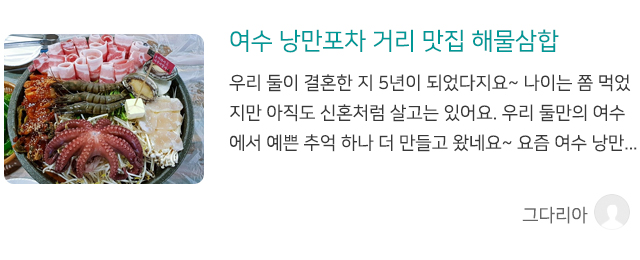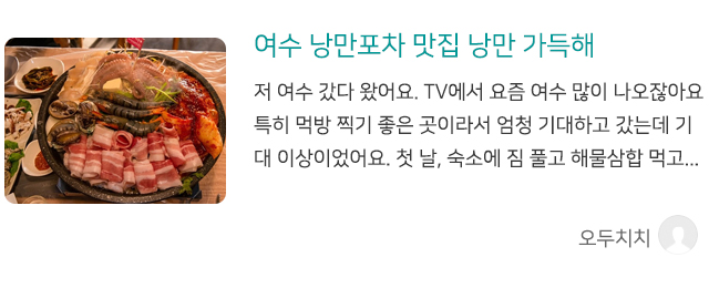 식사 전후 관광지 이동하기에도 편리합니다. 낭만도시 여수를 맛있는