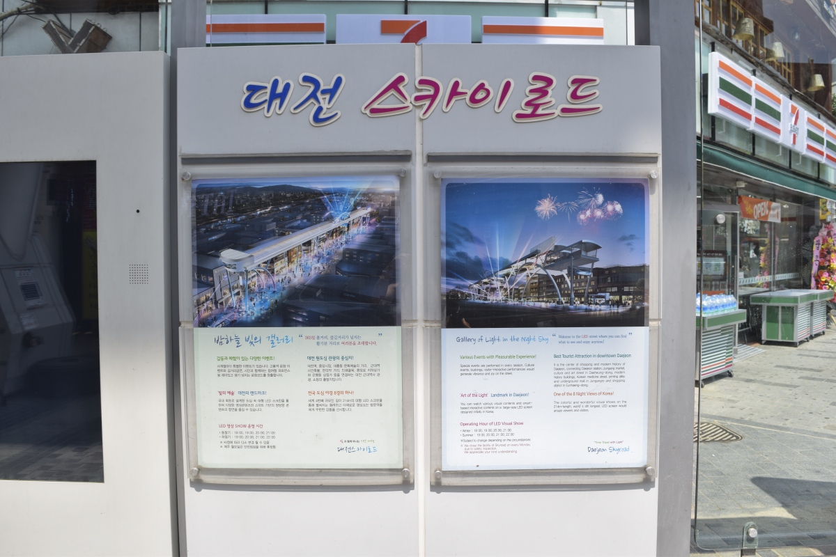 은행동상점가의 중심 부분에는 길이 214미터, 높이 20미터 규모의 초대형 LED 영상아케이드 구조물인 대전 스카이로드가 조성되어 있어 특별한 볼거리를 더하여 준다.