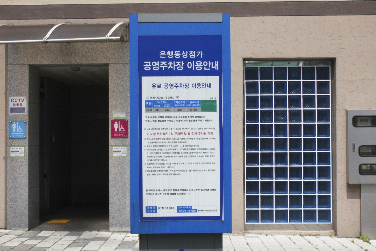 주차는 은행동상점가 입구 쪽에 조성되어 있는 은행동상점가 공영주차장을 이용하면 된다.