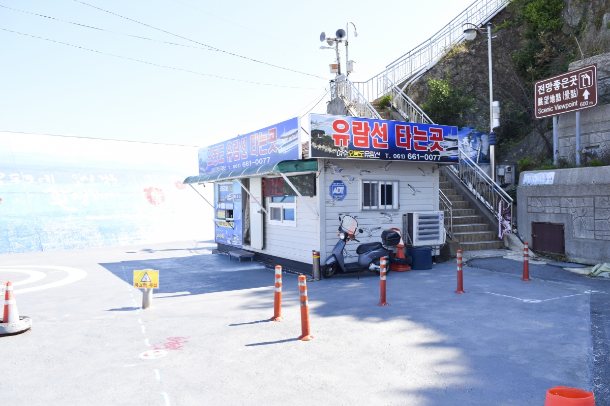오동도는 자차 이용 시 입구 쪽에 있는 유로주차장을 이용하면 된다. 카드 결제가 가능하며