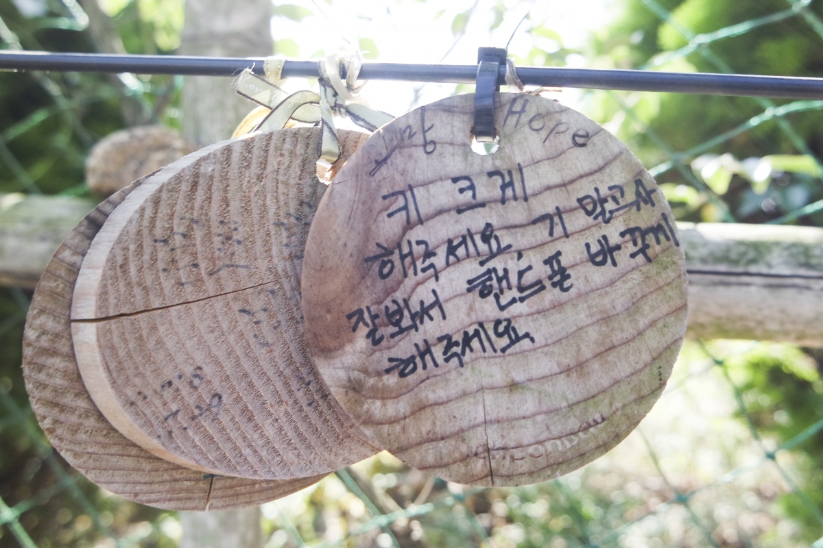 흑두루미 소망패에 소원을 적어 흑두루미 소망터널에 걸어 두면 33일 후 소원이 부화되어 이루어진다고 한다.