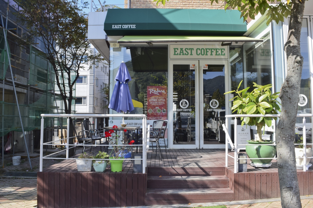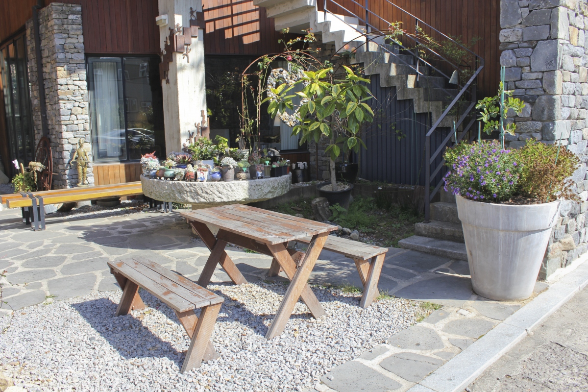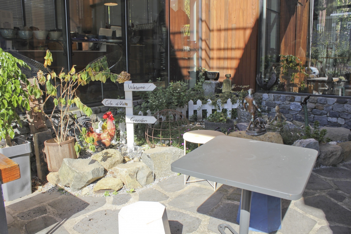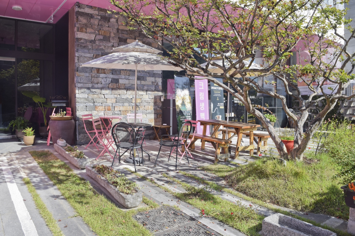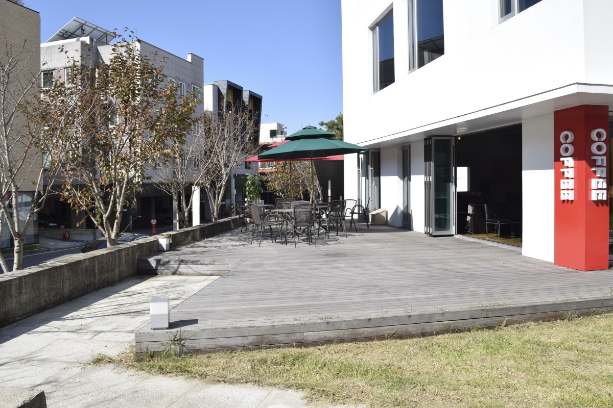 나무테라스 위에 야외파라솔이 설치되어 있어 시원한 바람과 정원을 바라보며 따뜻한 커피를 마실 수 있도록 만들어져 놓은 카페도 있다.