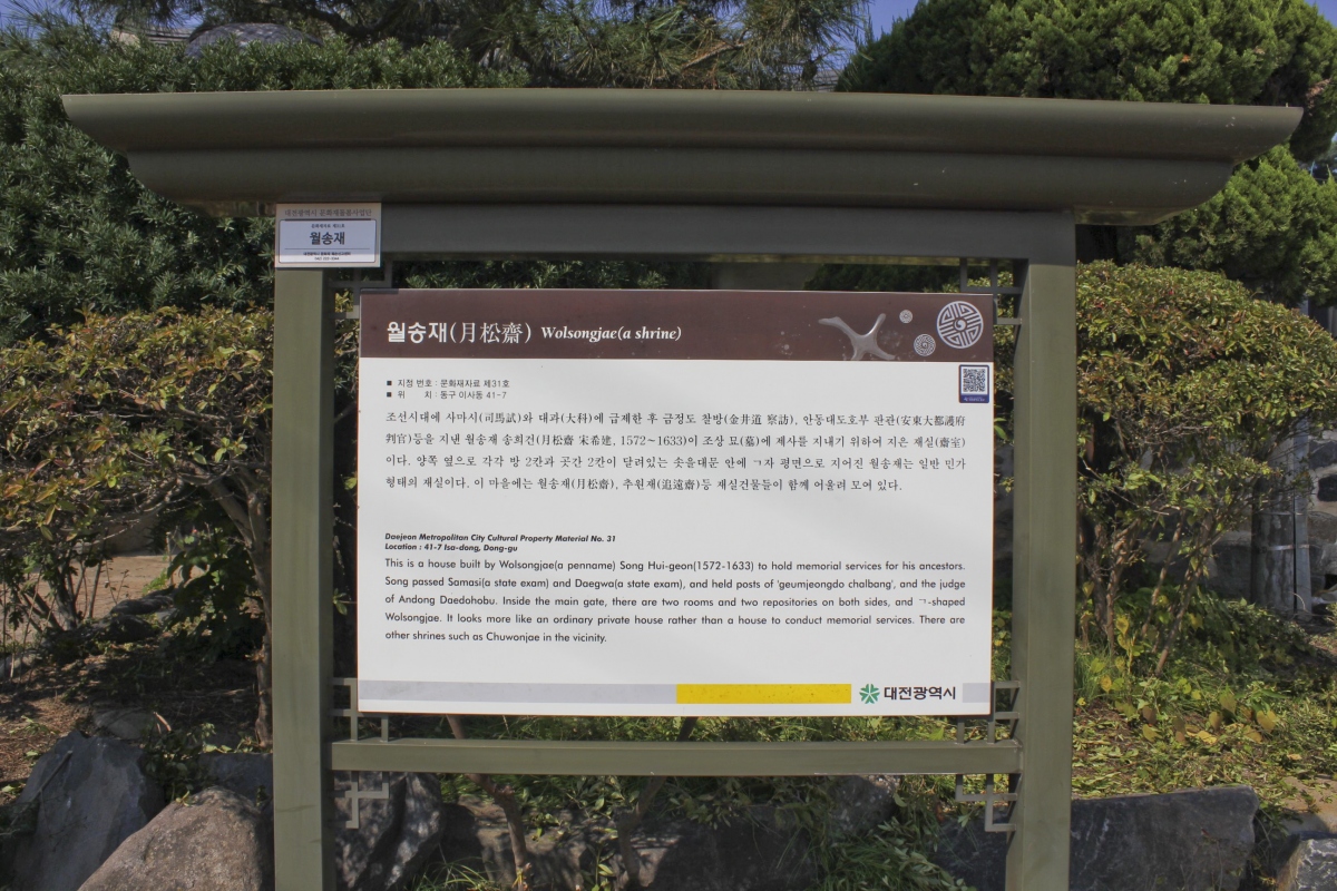 월송재는 조선시대 사마기, 대과에 급제하여 금정도 찰방, 안동대도부호 판관 등을 지낸 월송재송희건이 조상 묘에 제사를 지내기 위해 지은 재실이며 일반 민가 형태이다.