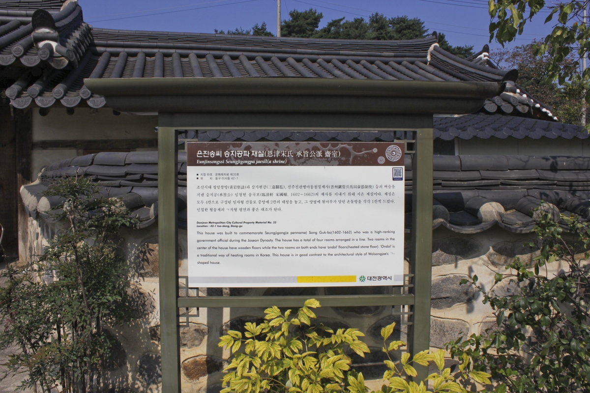 유교민속마을은 대전 동구 이사동에서 은진 송씨가 500여년전부터 집성촌을 이루고 터전을 잡고 살아 온 곳이다.