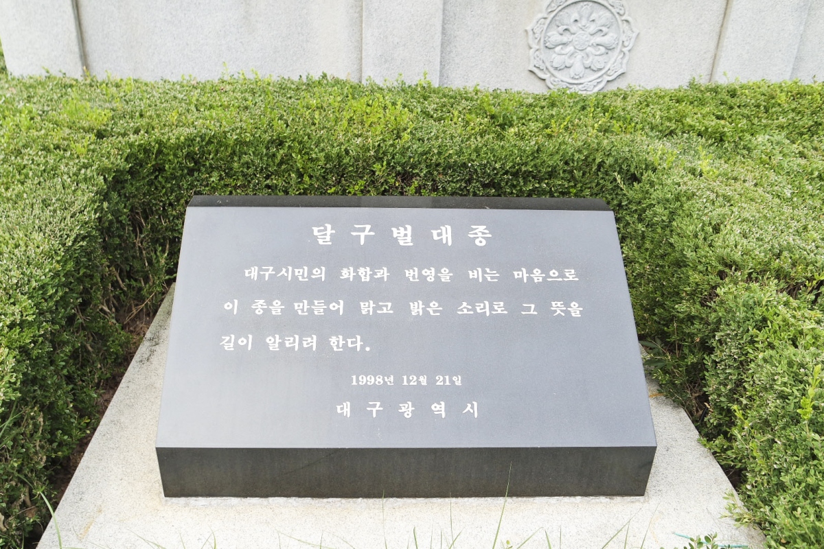 1998년에 설치된 이 달구벌 대종은 공원을 돌아보며 즐길 수 있는 특별한 볼거리를 더하여 준다.