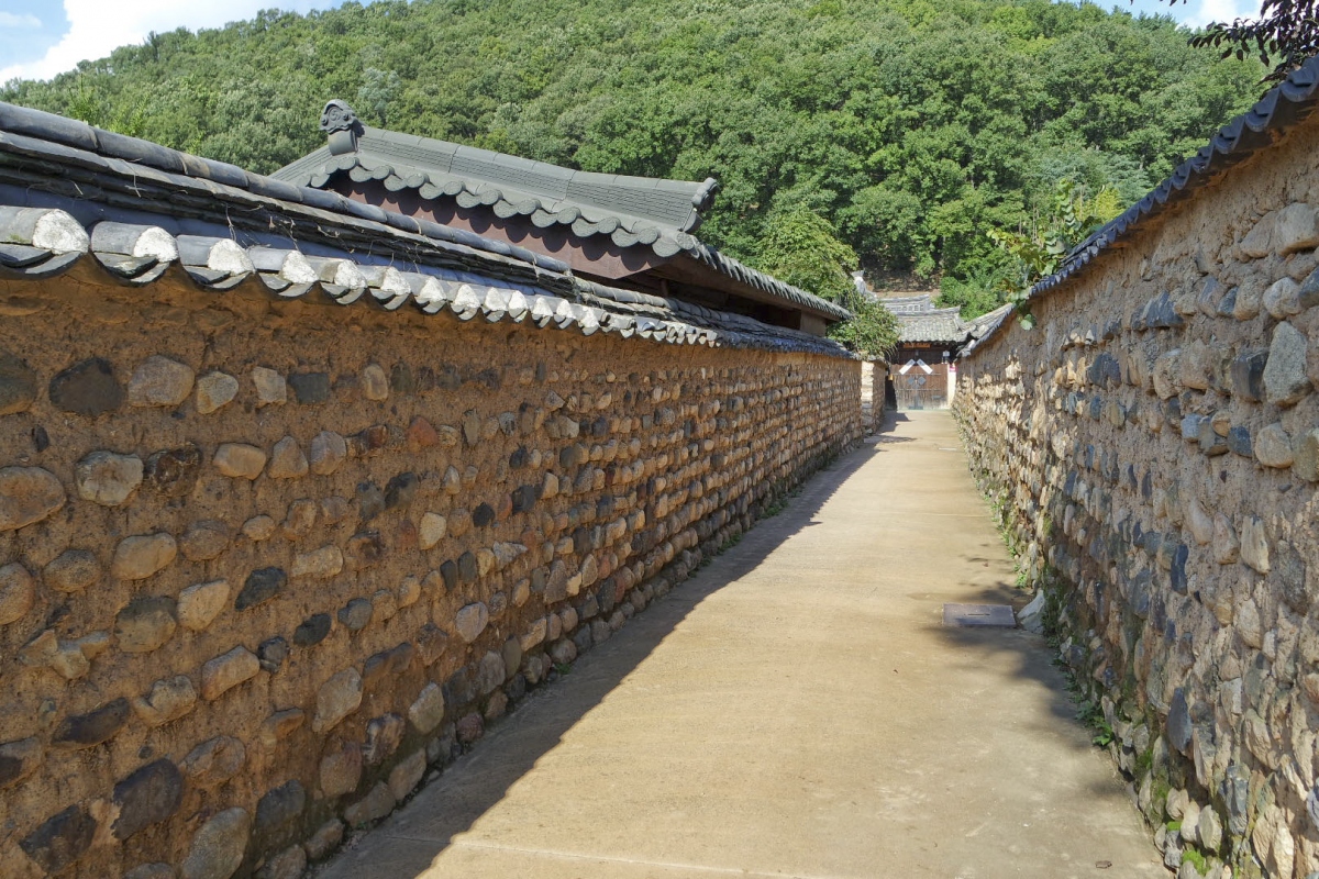 남평문씨본리세거지에서 먼저 만나볼 수 있는 것은 옛 감성이 물씬 풍기는 황토색 돌담길이다.