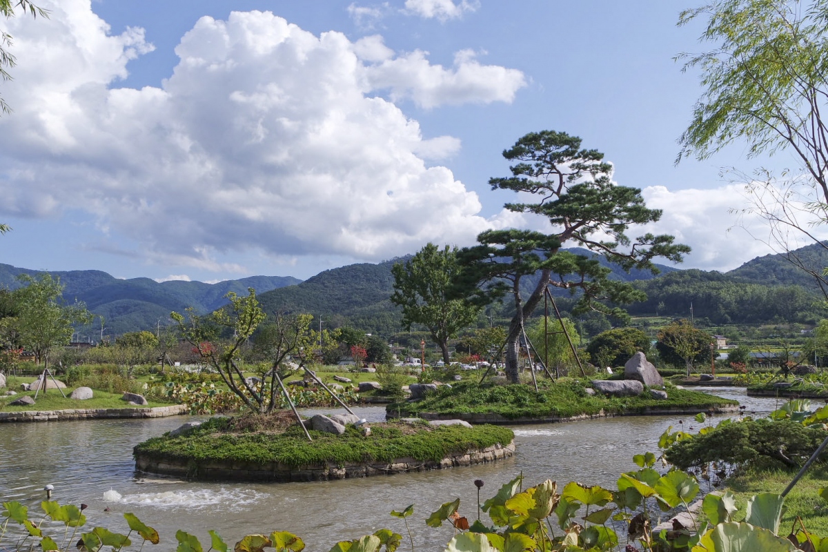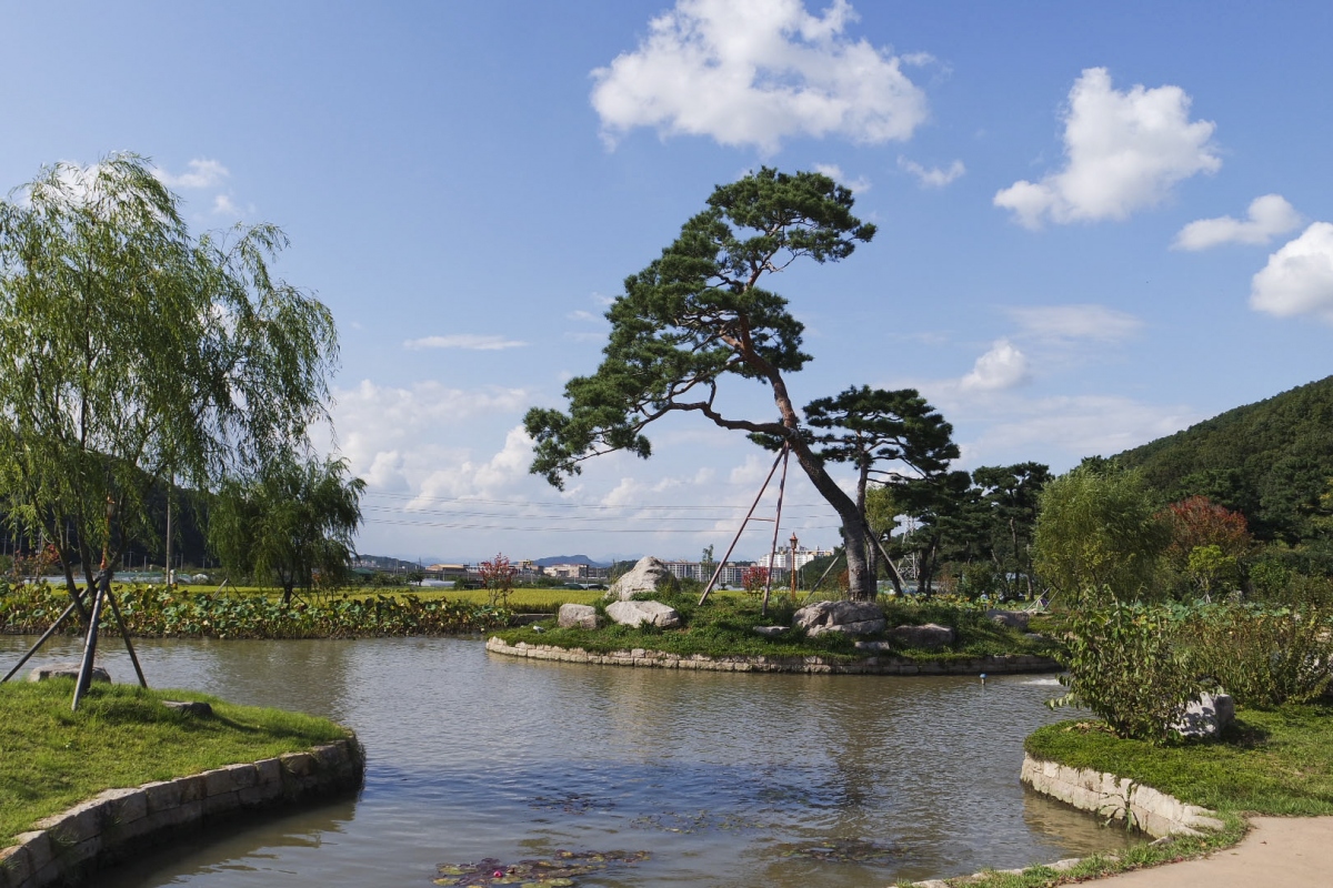 수양버들 나무와 아름드리 소나무가 심어져있어 너무 아름다운 자태를 볼 수 있다.